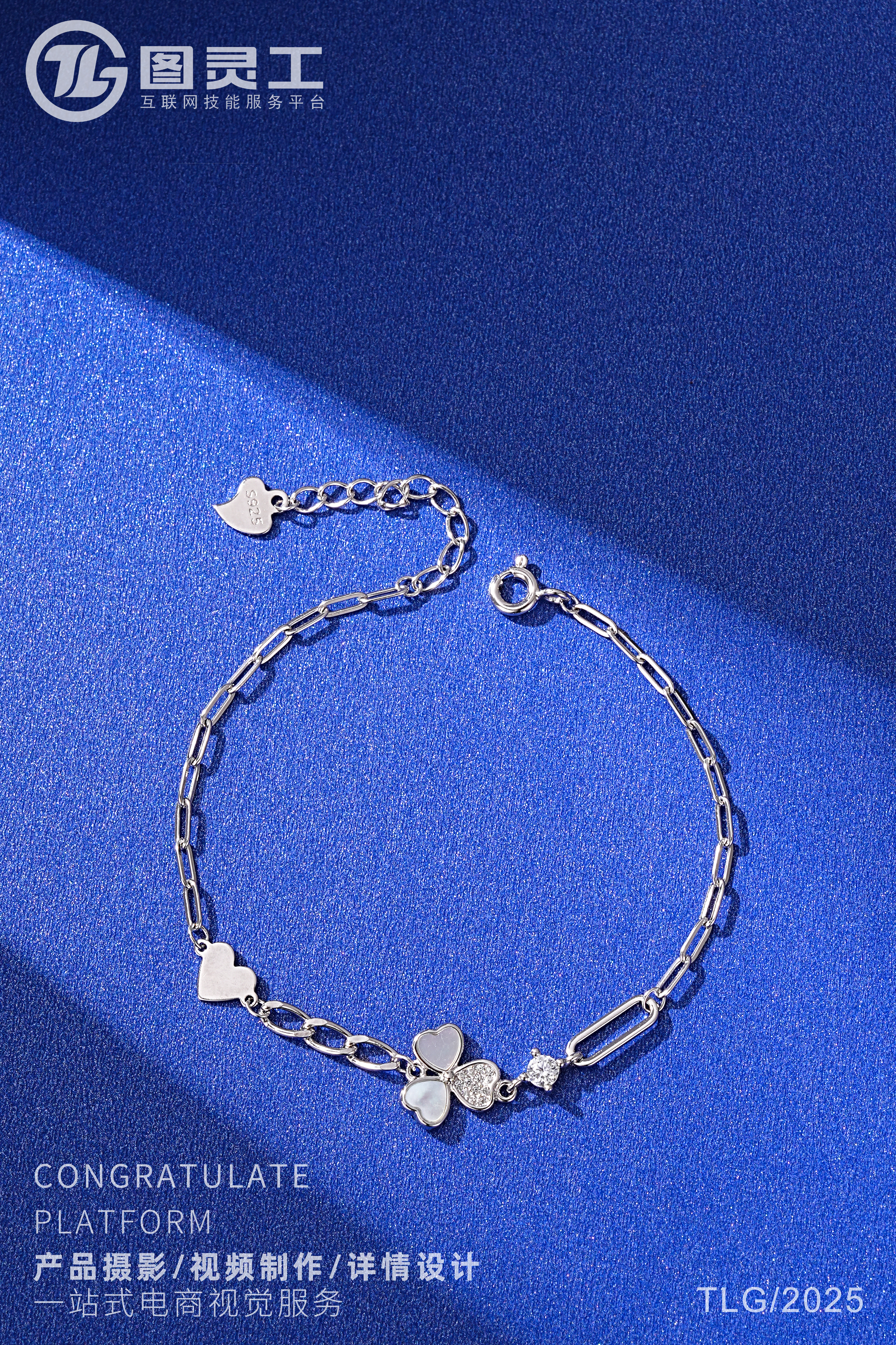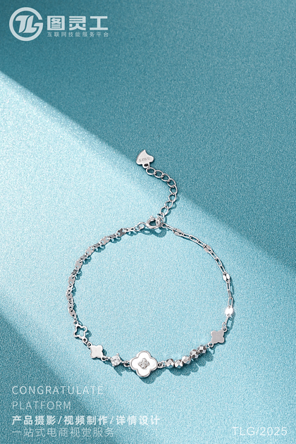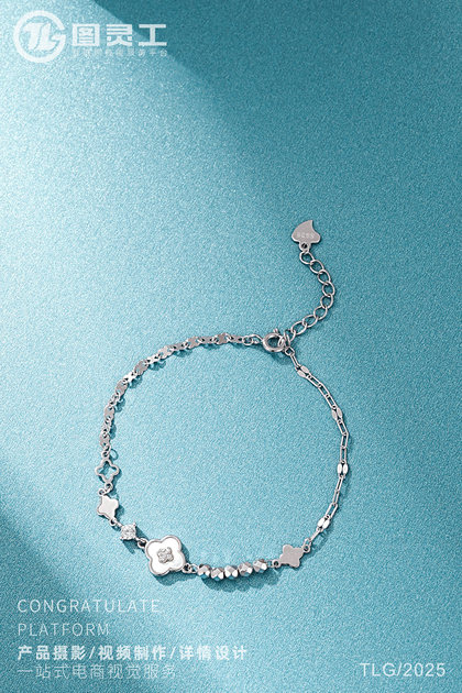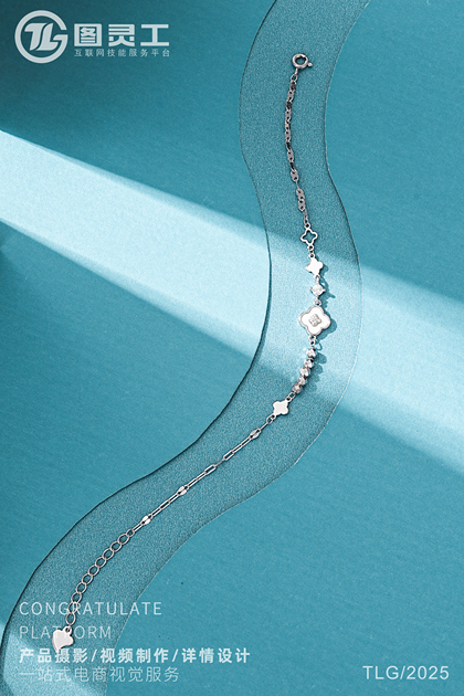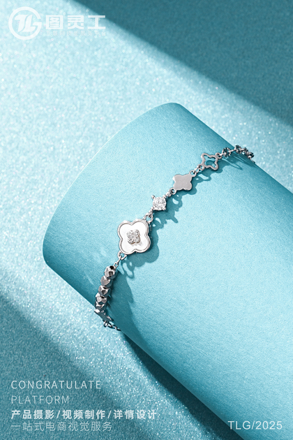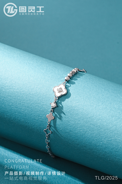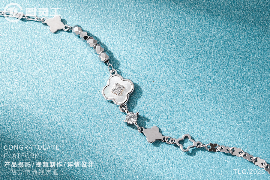 静物摄影丨电商产品拍摄丨珠宝首饰四叶草托帕石银手链