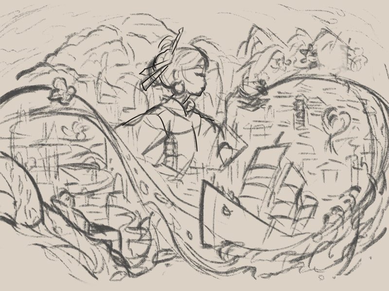 《飞机和船》插画绘制过程~