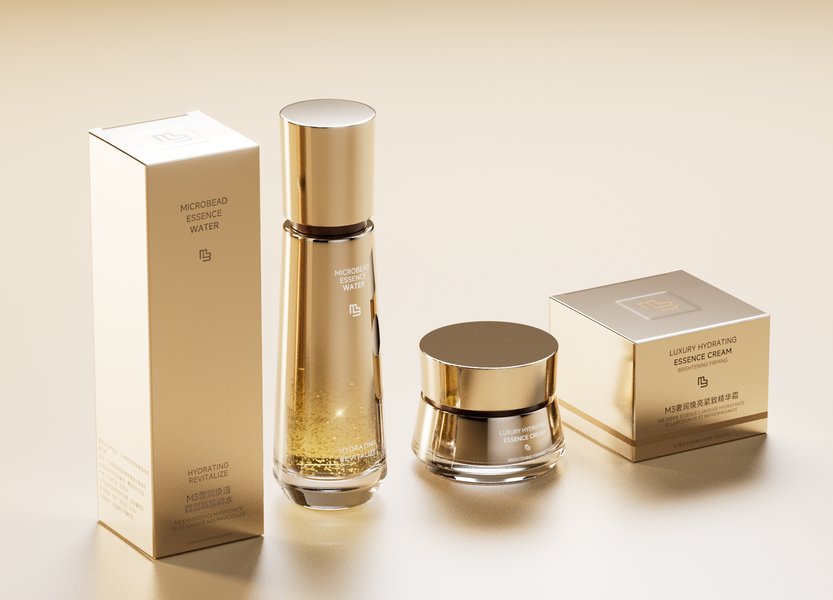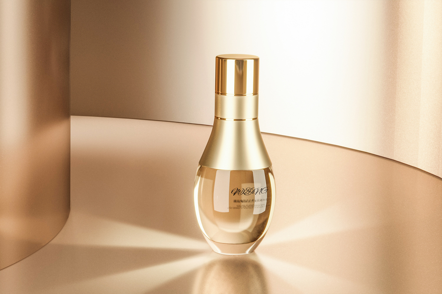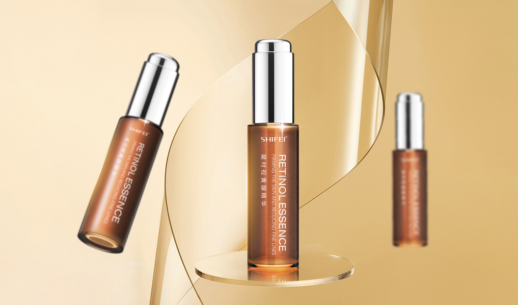 视黄醇精华海报,黄色,金色,精华液,产品渲染