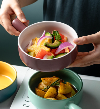陶瓷碗带把手北欧风格创意个性焗饭沙拉碗电商摄影产品