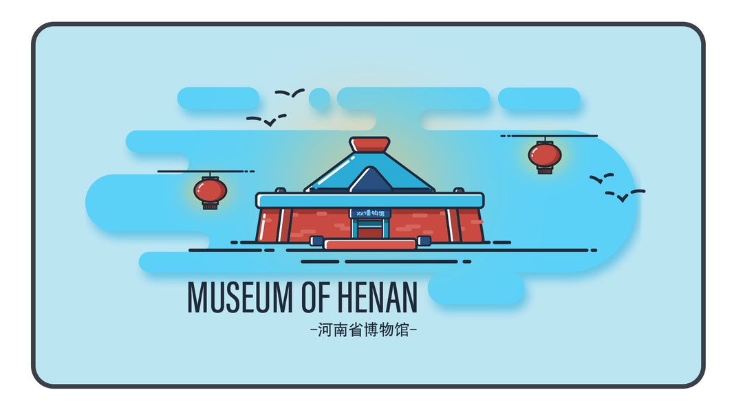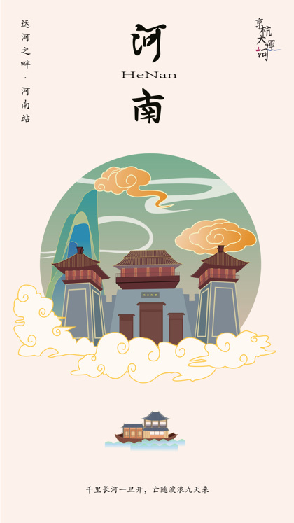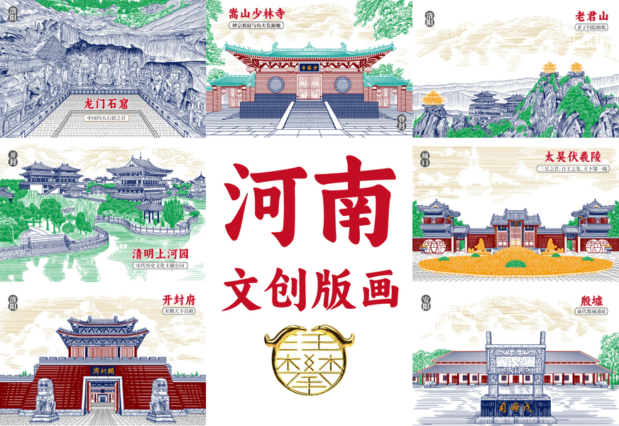 河南文创版画明信片建筑插画设计