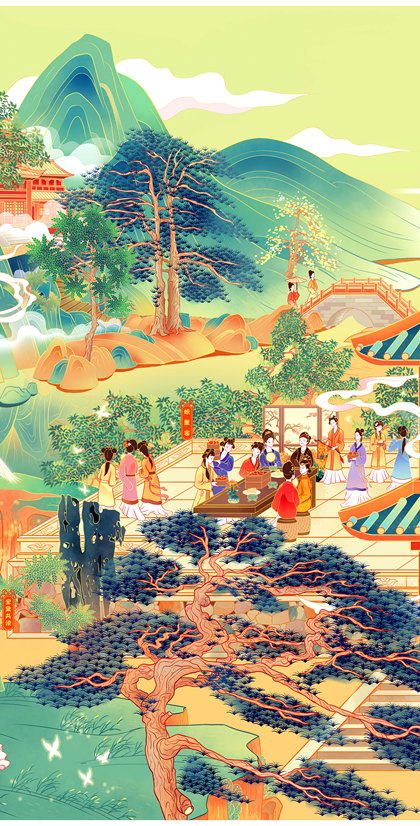 兰亭雅集|探访古人藏在酒里的中国文化|古风插画