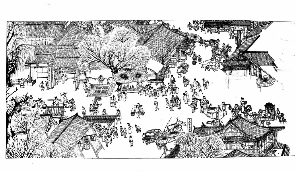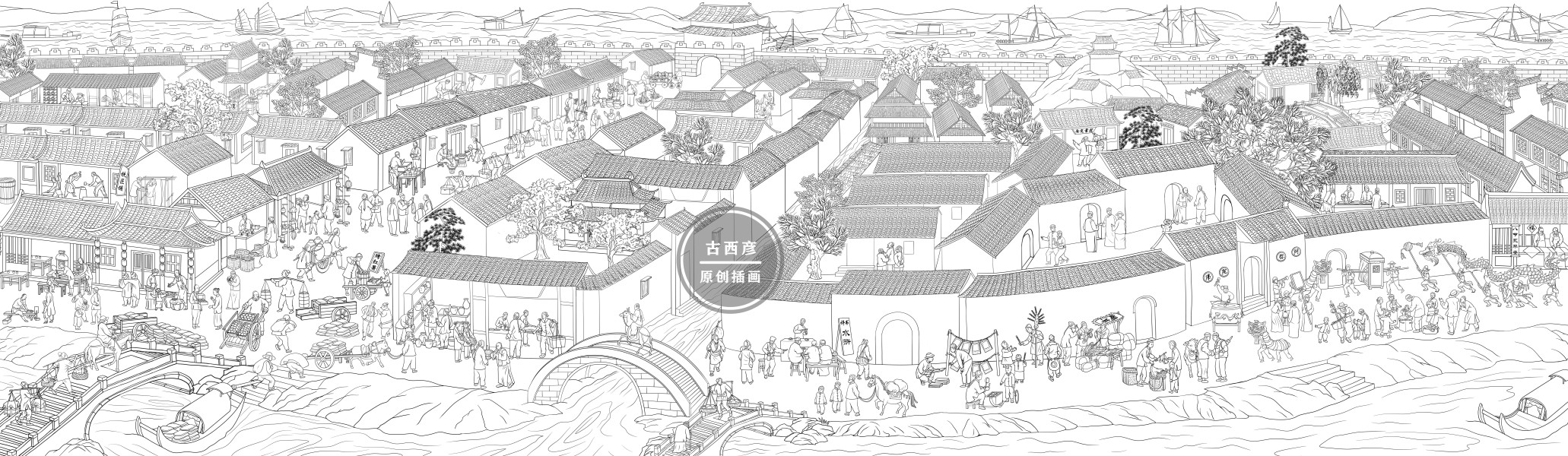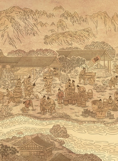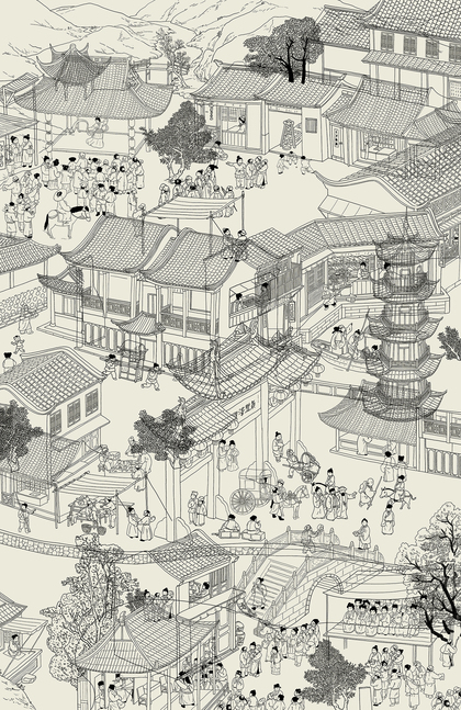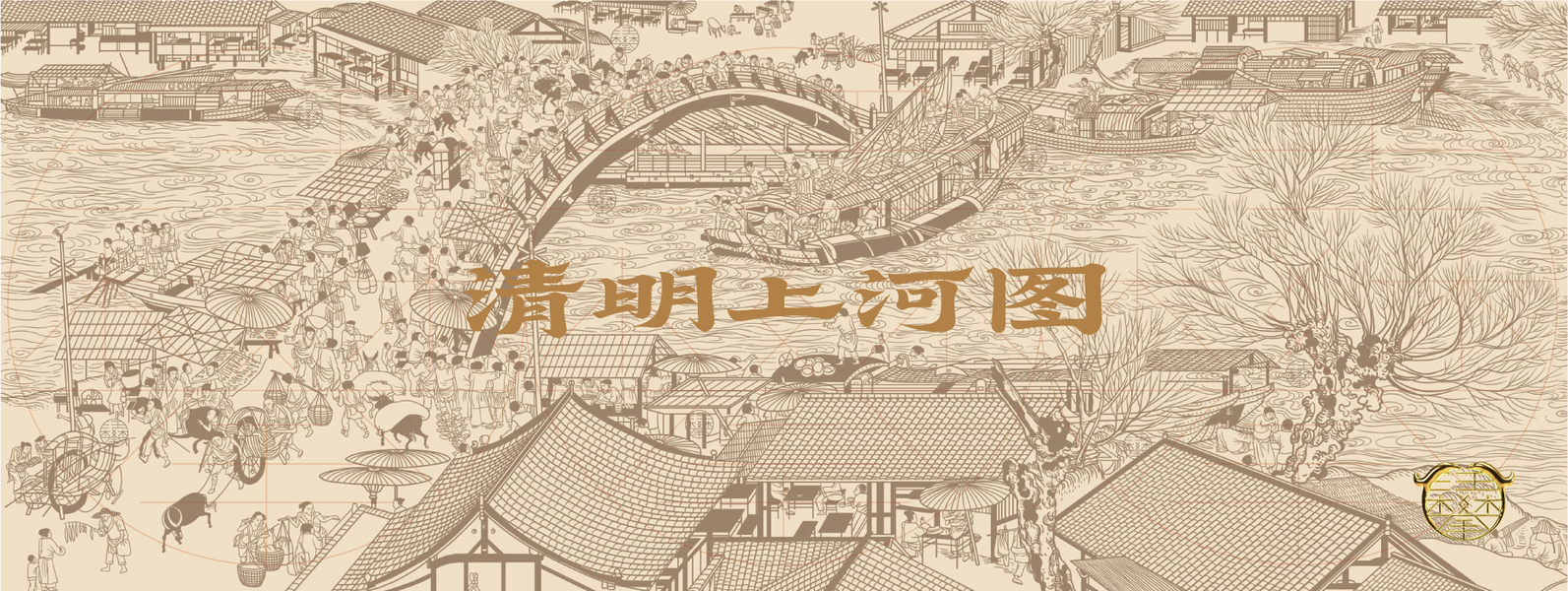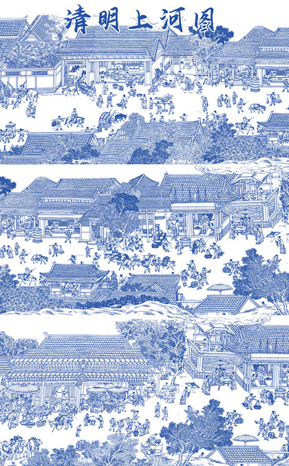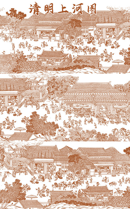 清明上河图版画/茶酒包装插画设计/版画/原创