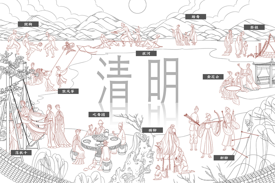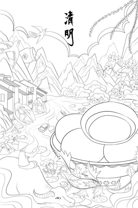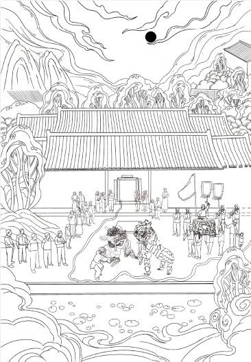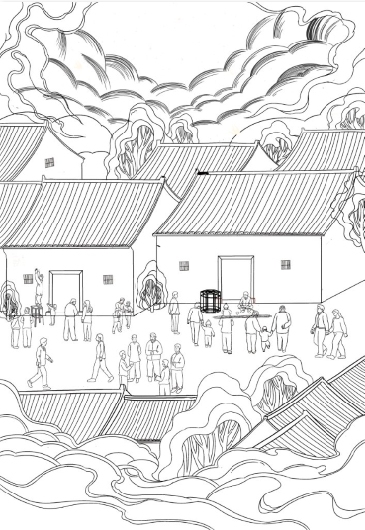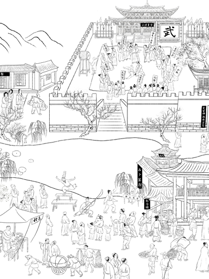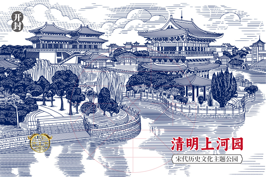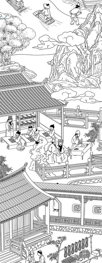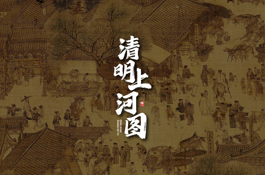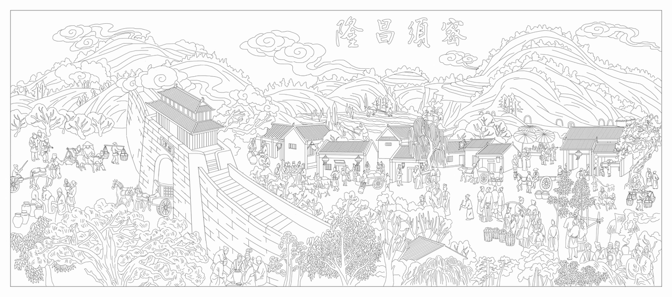 清明上河图版画/茶酒包装插画设计/版画/原创