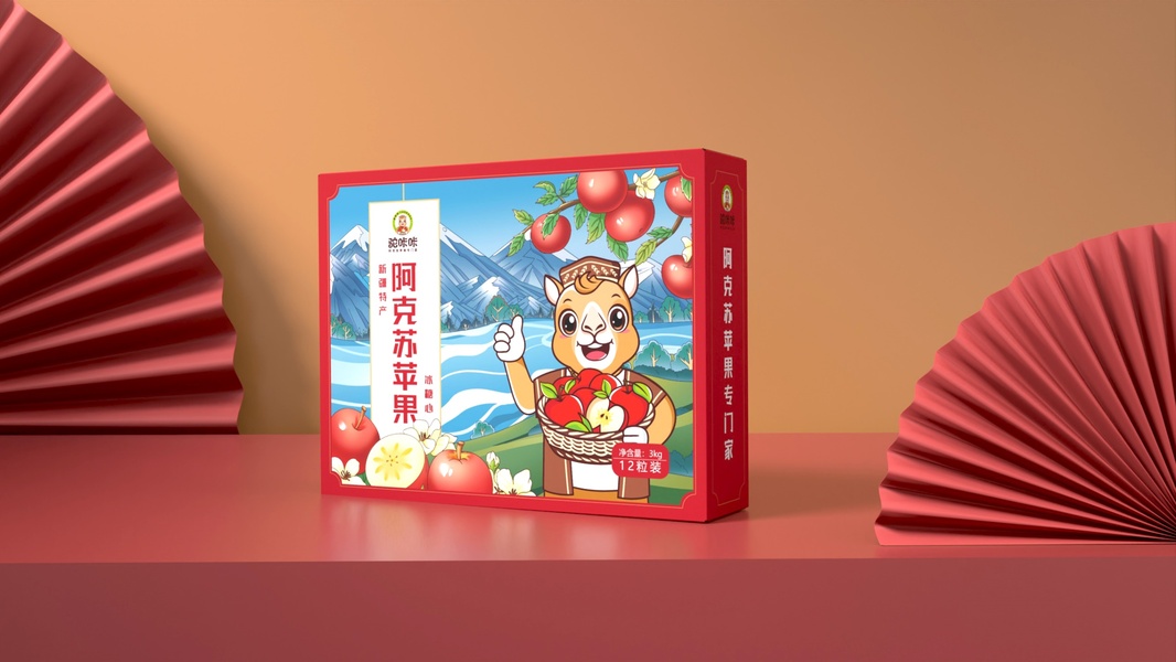冰糖心苹果插画包装|水果礼盒插画系列|水果包装设计