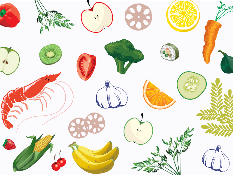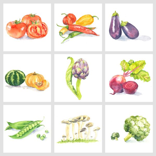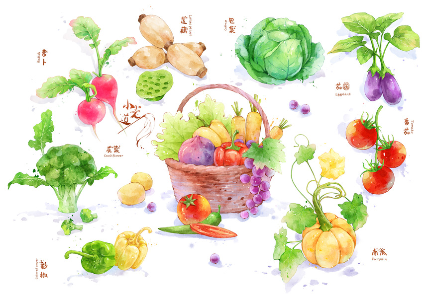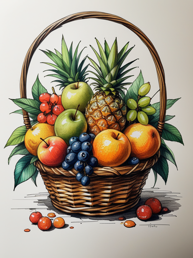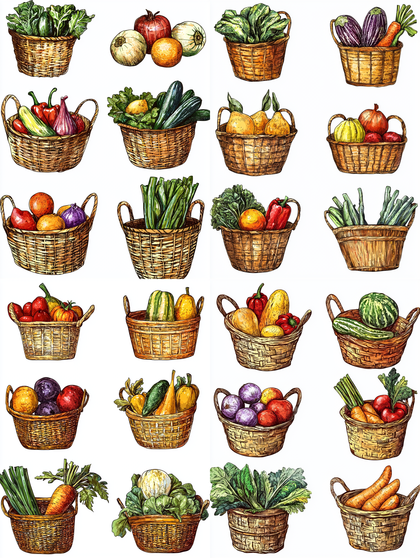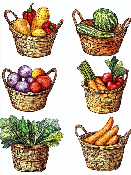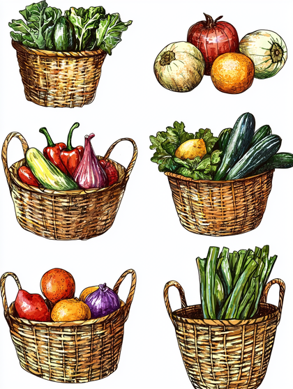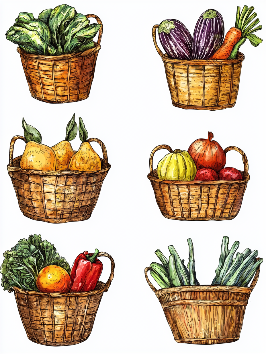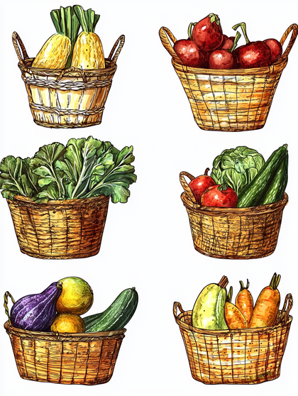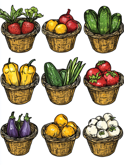 彩色手绘果蔬 | 线描插图 | MJ绘画