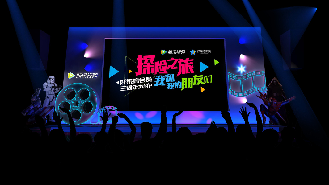 腾讯视频好莱坞会员三周年大趴(舞台及会场布置)