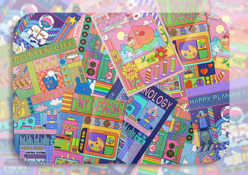 乙巳年小粉蛇系列新年插画|谐音梗海报