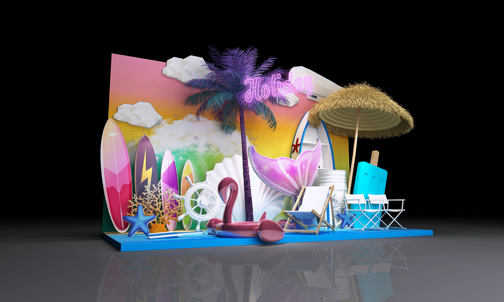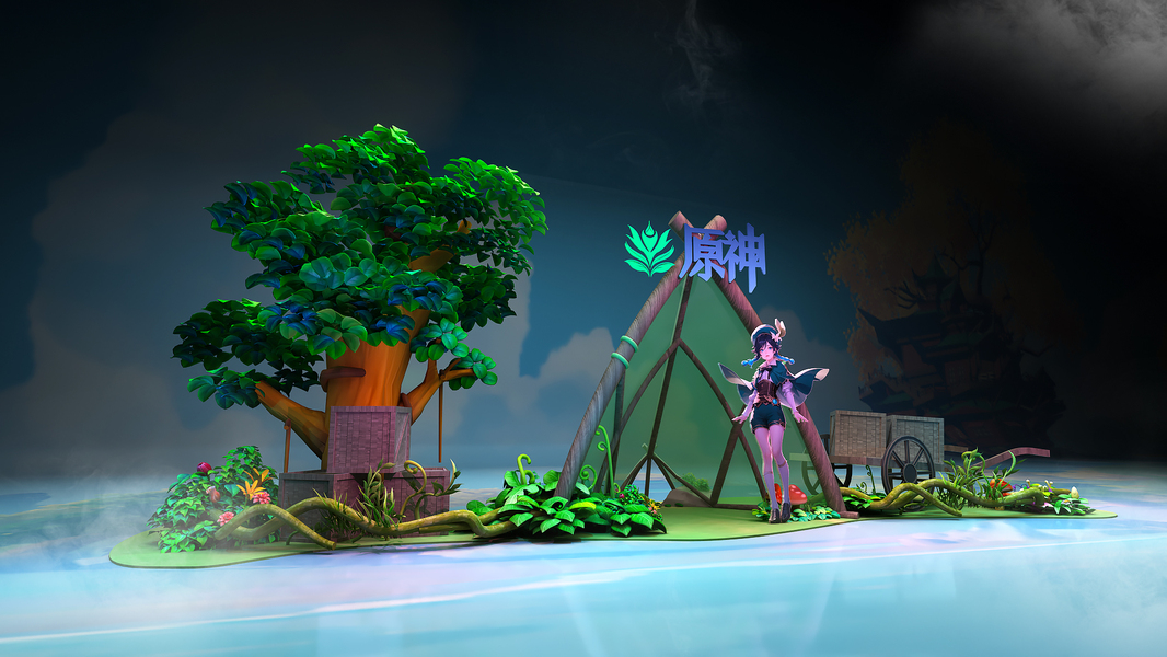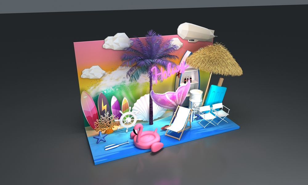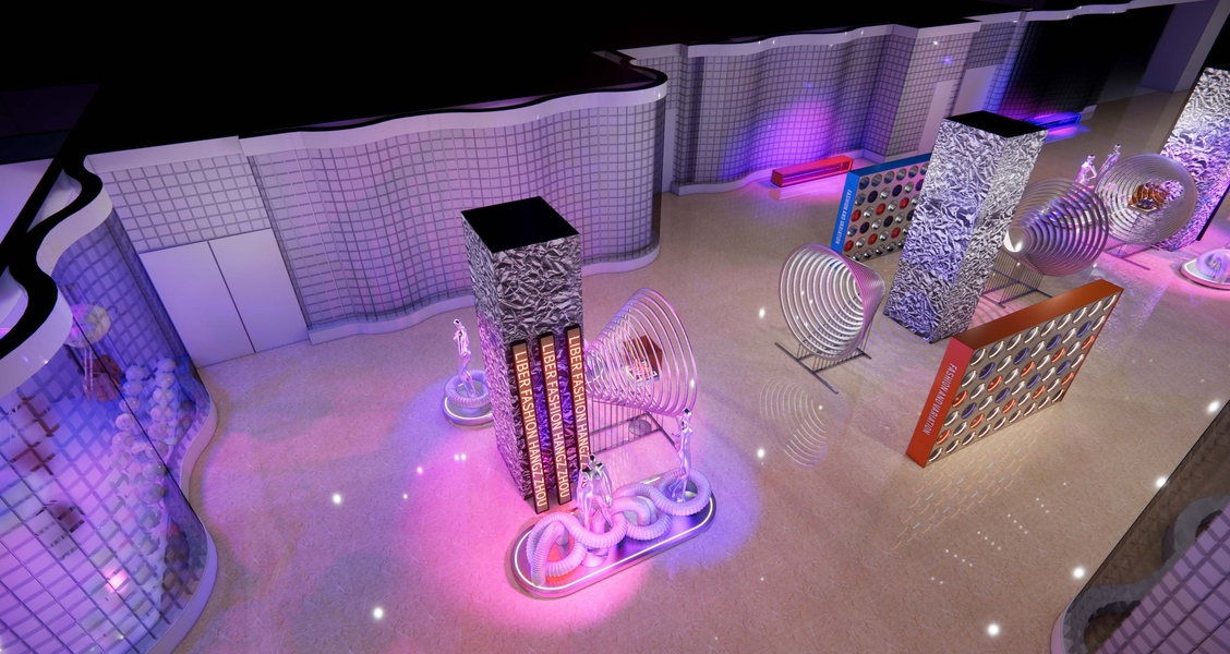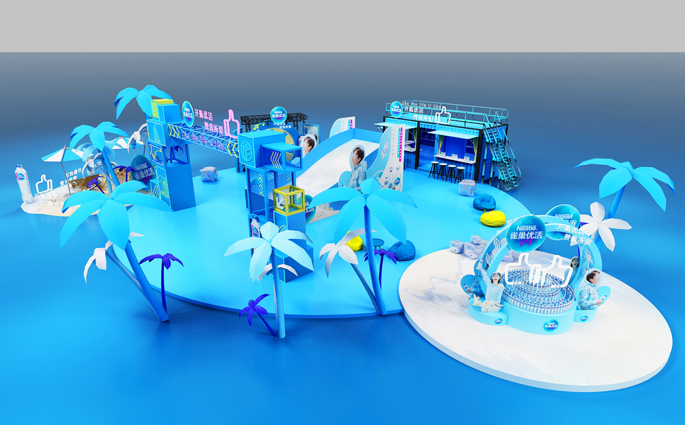 伞形美陈,展会展厅活动舞美美陈3d效果图设计