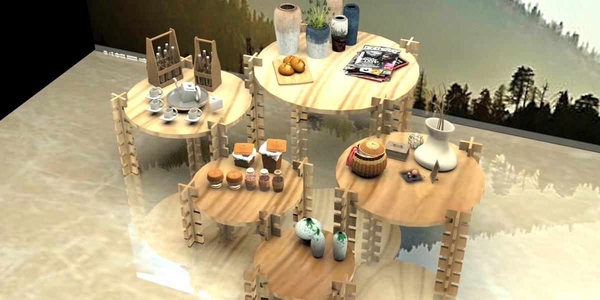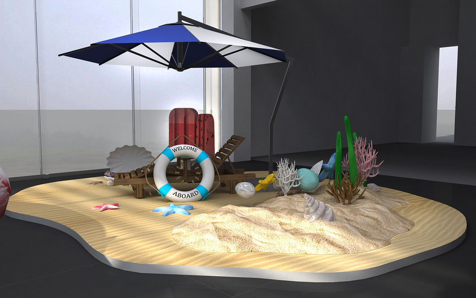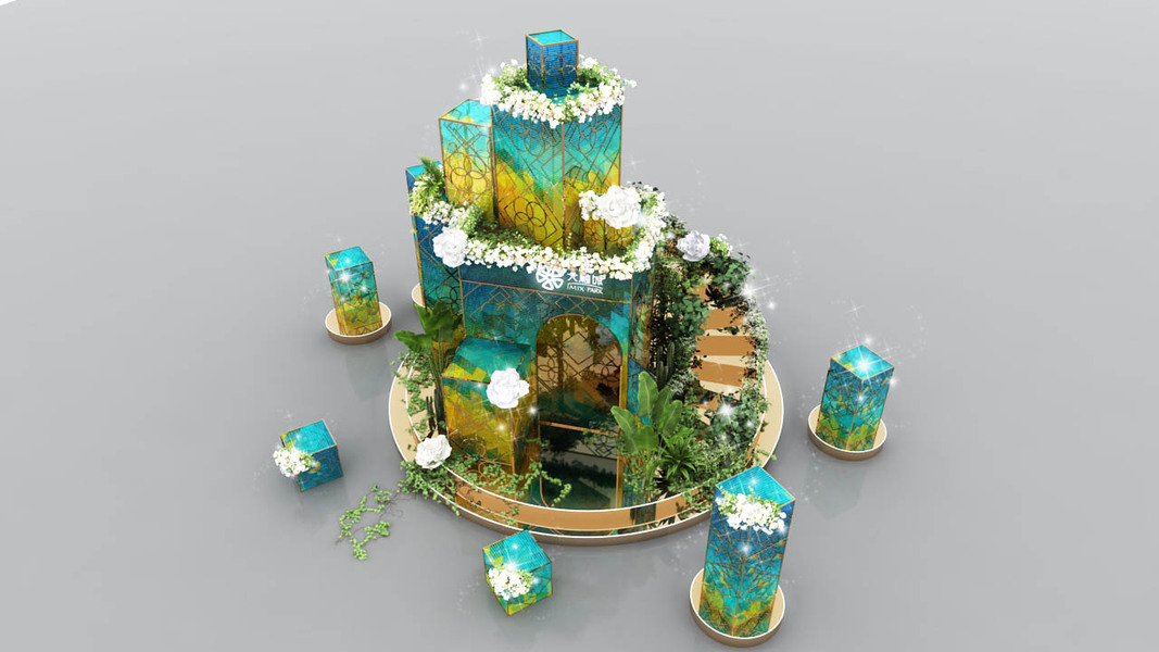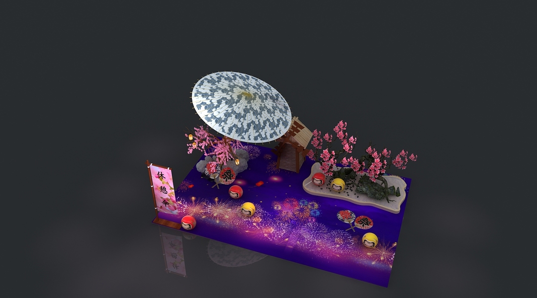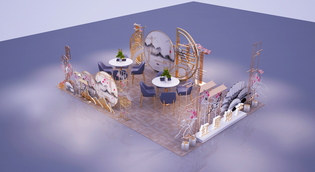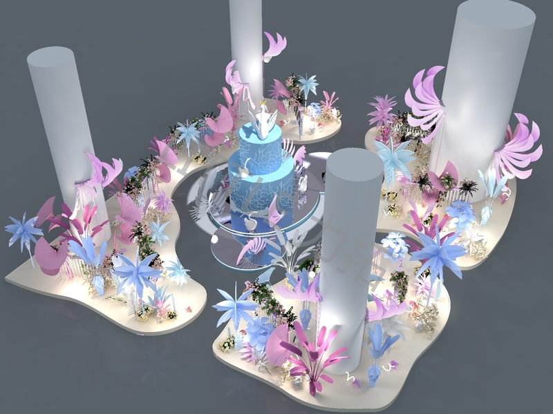 伞形美陈,展会展厅活动舞美美陈3d效果图设计