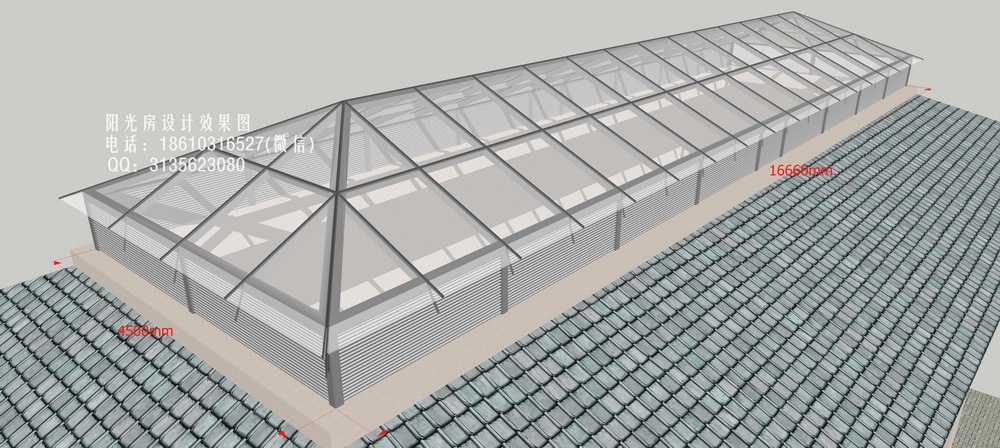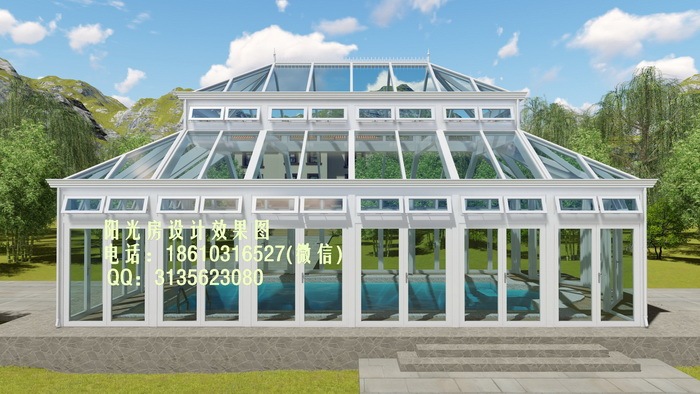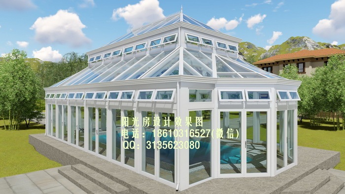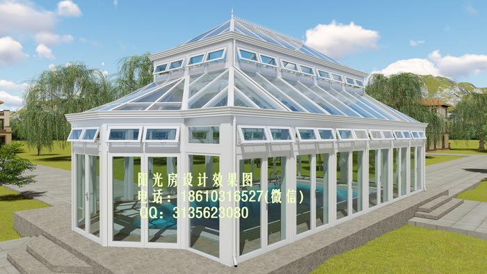 铝合金四坡顶阳光房设计效果图