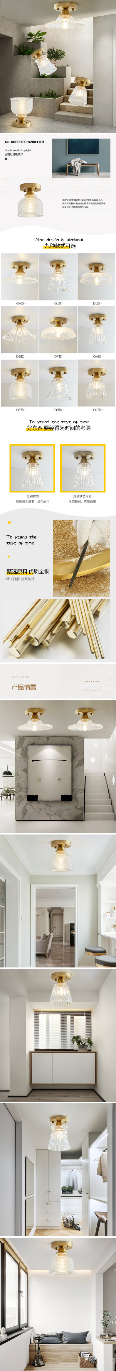 北欧全铜过道吸顶灯