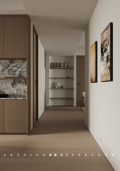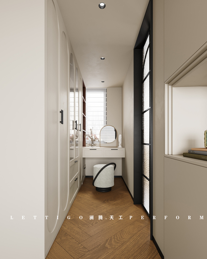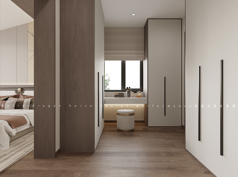 原木奶油风客餐厅厨房卧室—择木创建新晨效果图