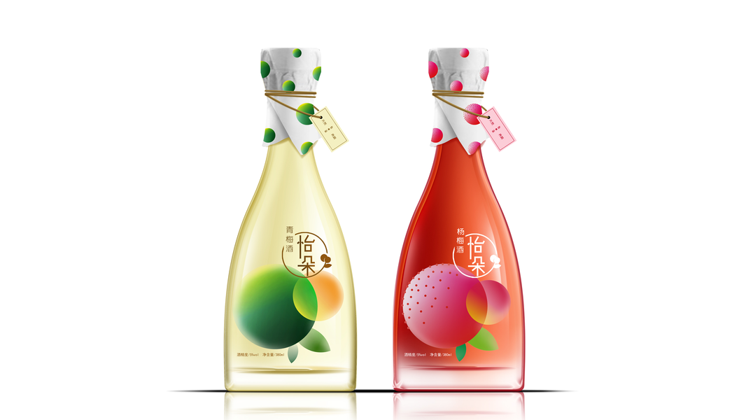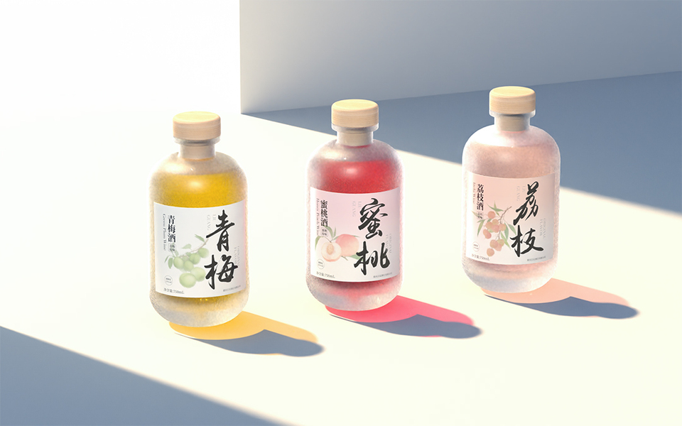 清爽果酒插画|蜜桃、青梅果酒包装