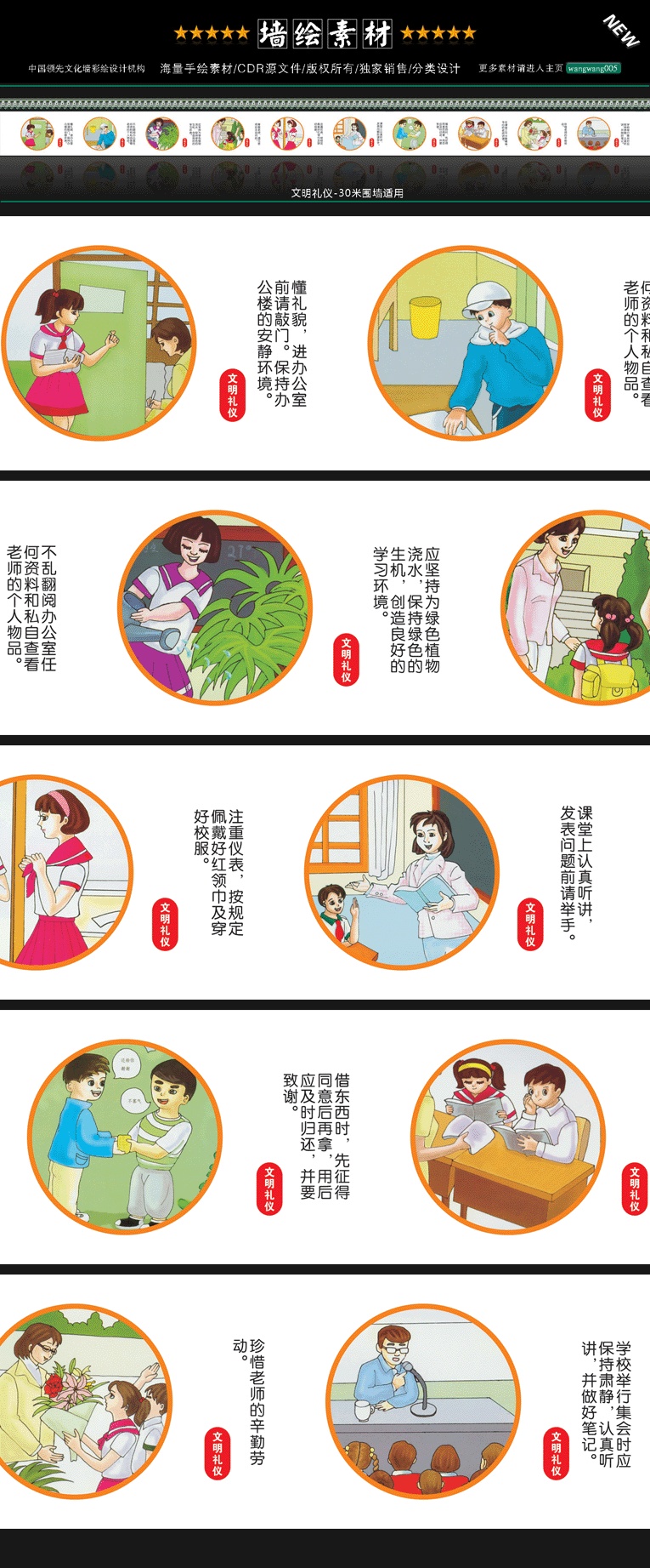 社区围墙彩绘、校园文化墙设计、新农村围墙漫画、文化墙素材、公益漫画设计