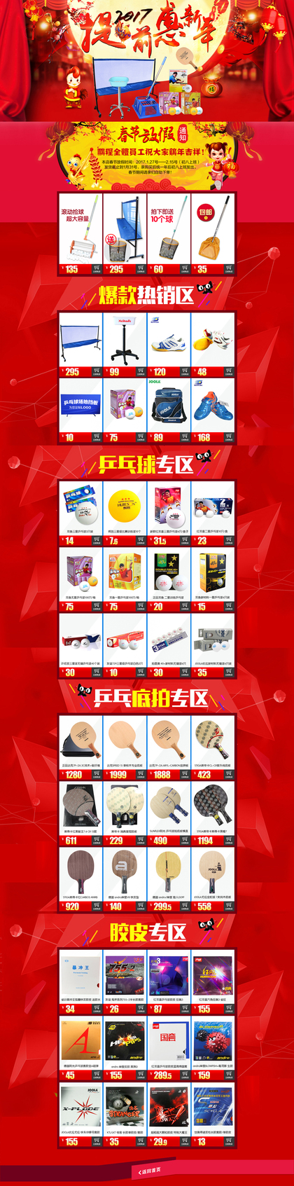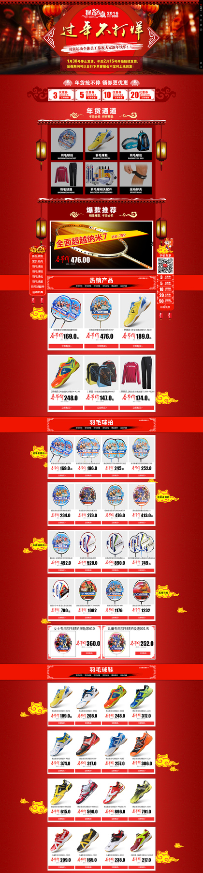 淘宝天猫体育用品羽毛球拍年终店铺首页装修设计全屏海报通栏设计春节店铺首页