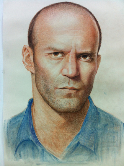 【教程】步骤图教你用彩铅笔手绘硬汉杰森·斯坦森