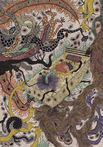岩彩 |《濒死之人》——日本古坟时代文创插画