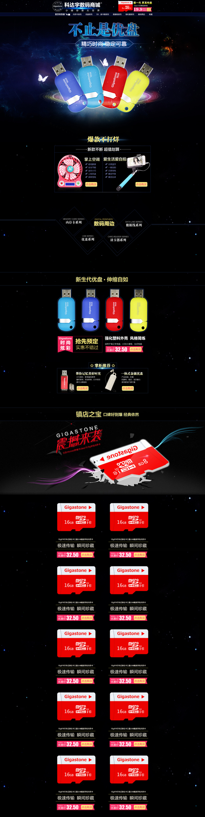淘宝首页 电子产品 科技小风扇 内存卡 优盘 夏天 自拍杆 数码类目 卡套