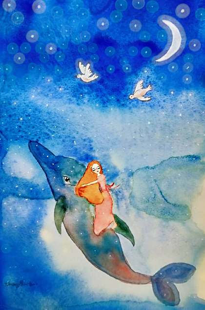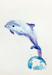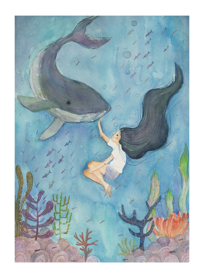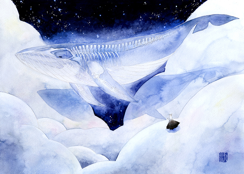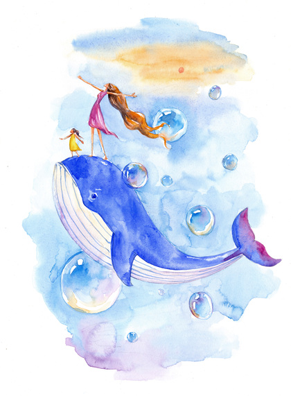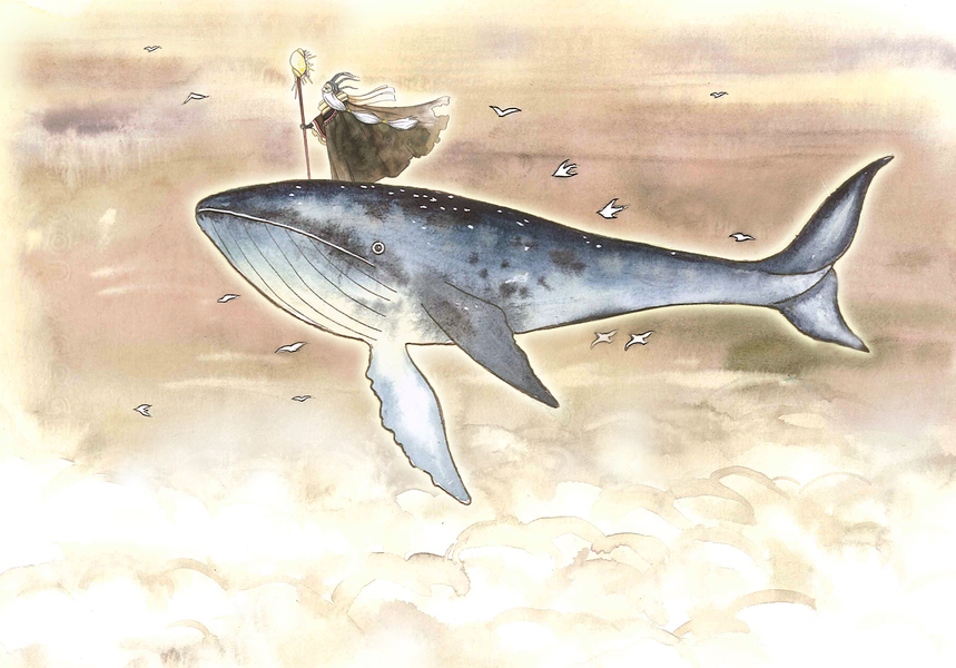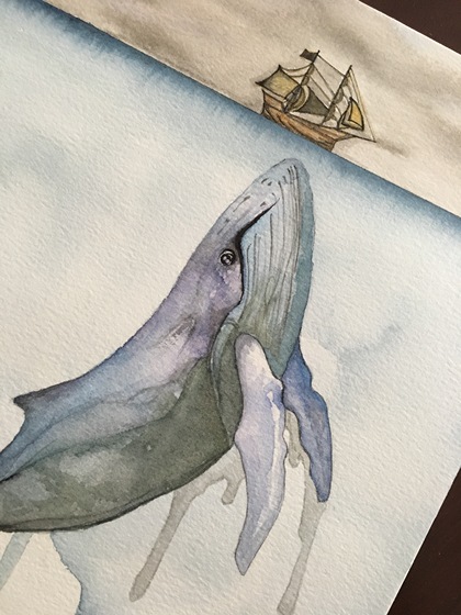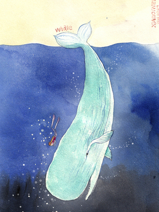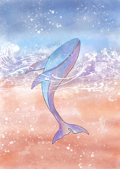 鲸鱼元素插画手绘 水彩鲸鱼 丙烯鲸鱼 水墨鲸鱼