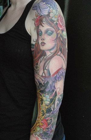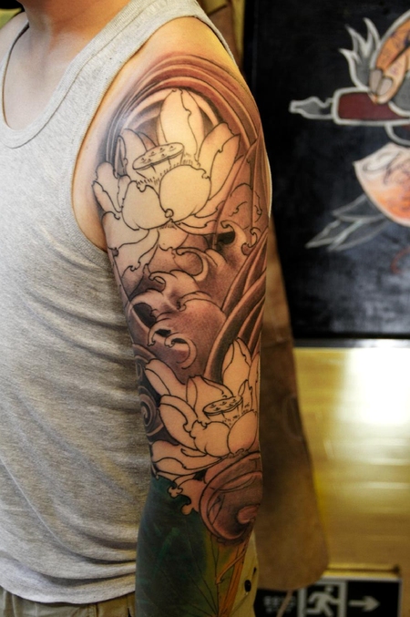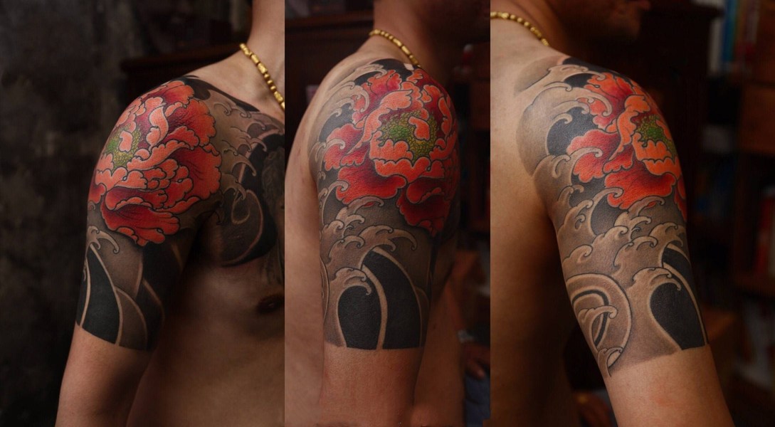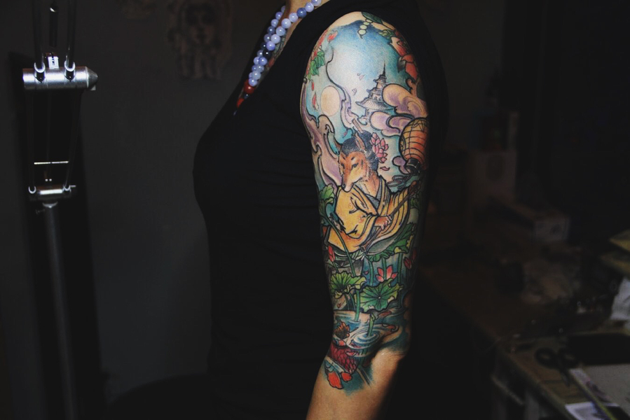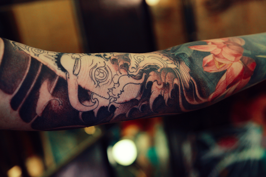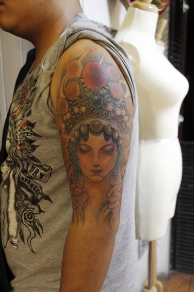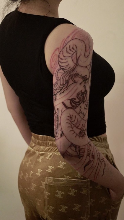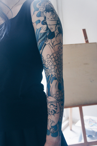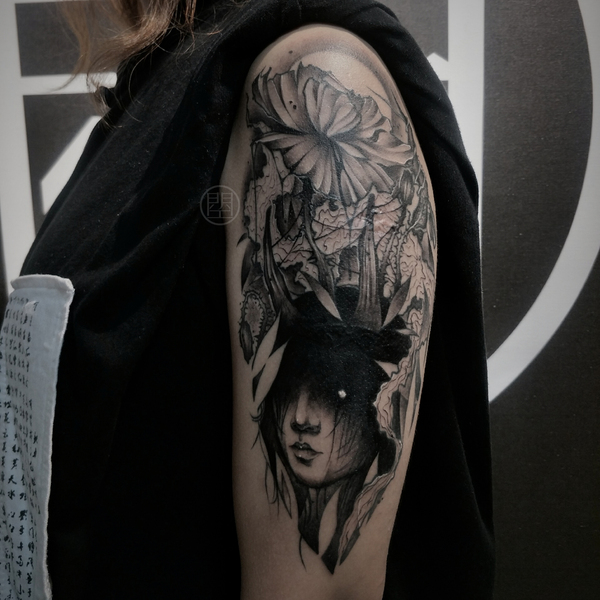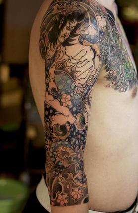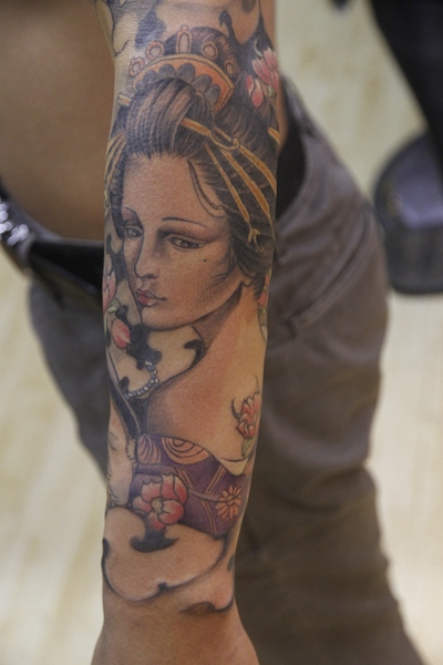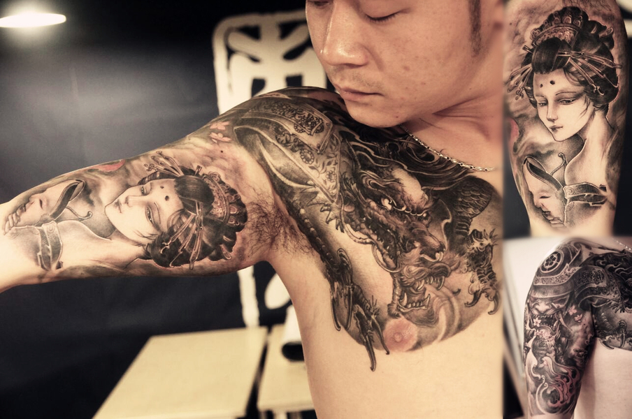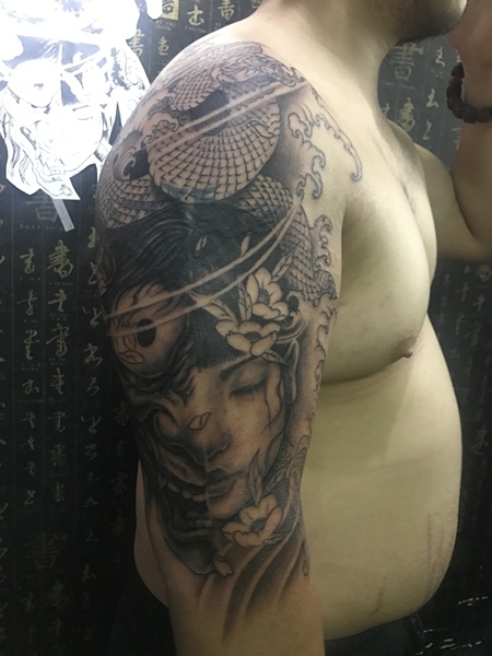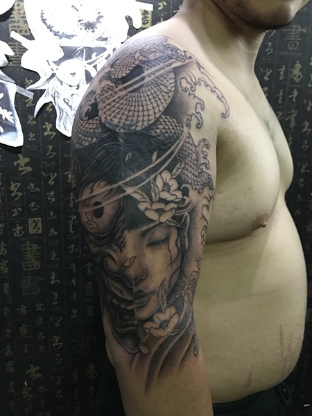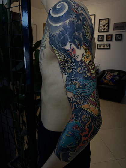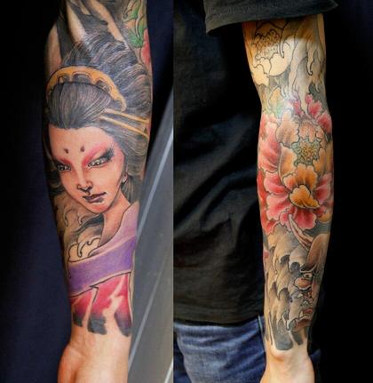 老徐的纹身作品-有艺妓的日式花臂