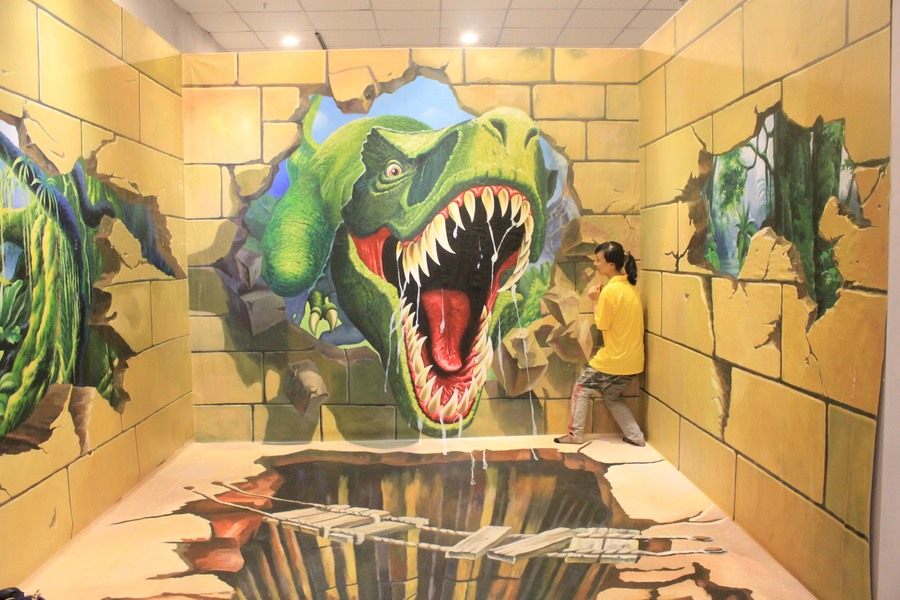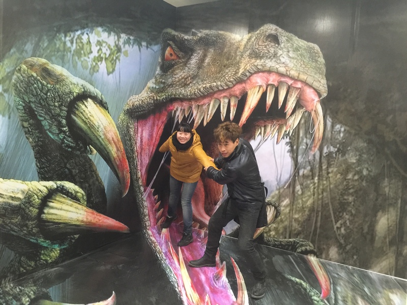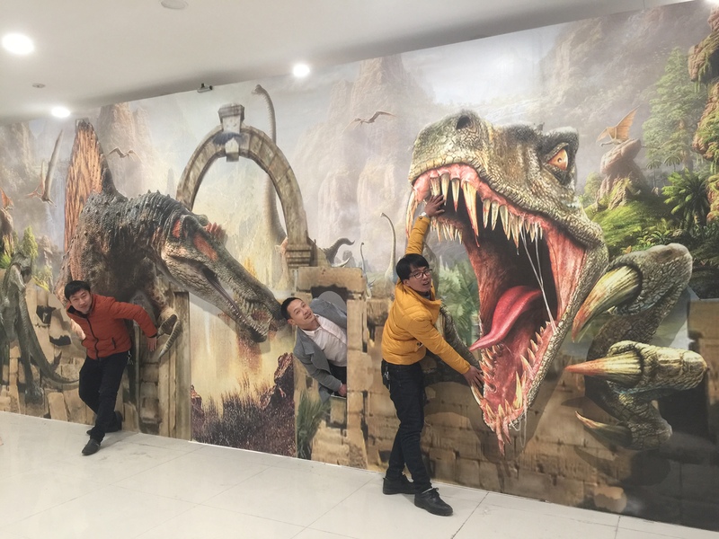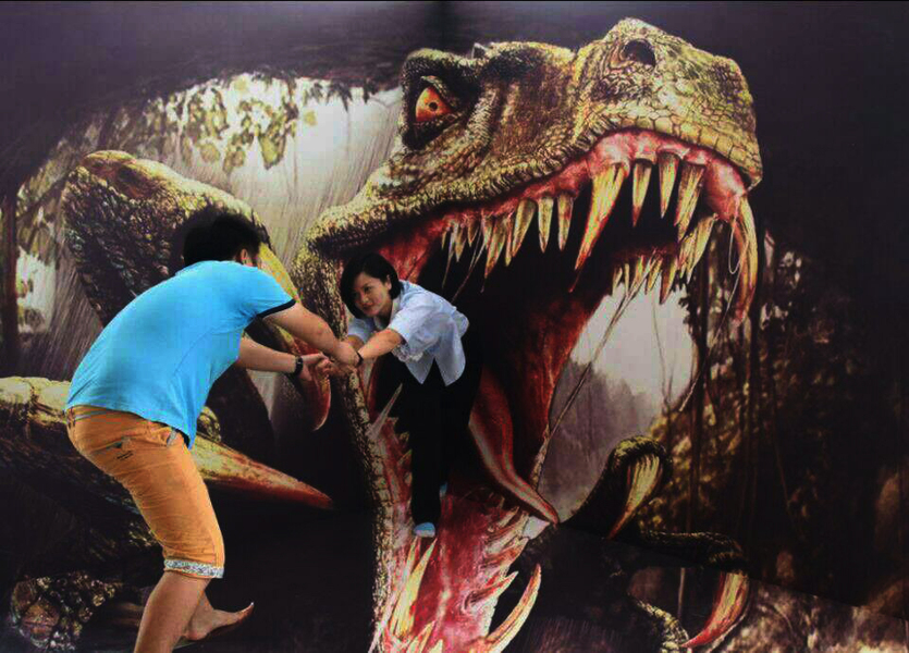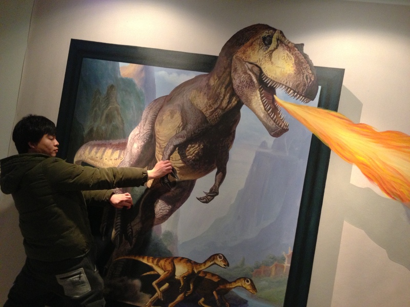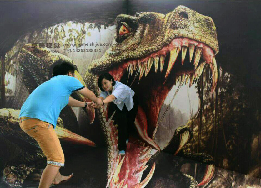 手绘北京3D立体画-恐龙、熊猫、企鹅怪鱼