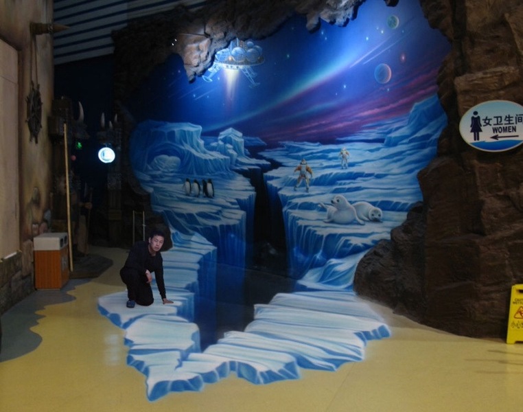 北京海洋馆的冰川系列3D墙地结合画完美收工