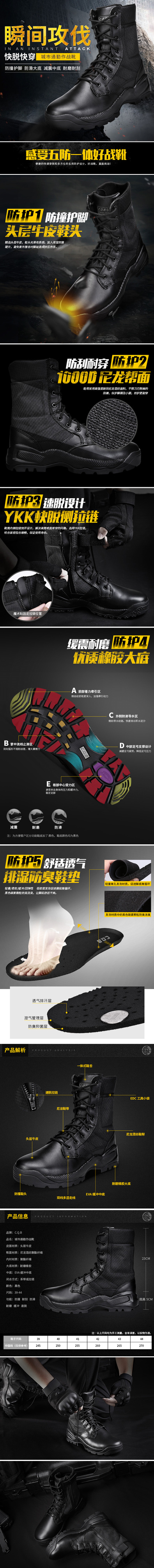 cqb正品高帮战术靴详情页 男特战靴防泼水详情页 swat军迷用品户外沙漠作战靴详情页