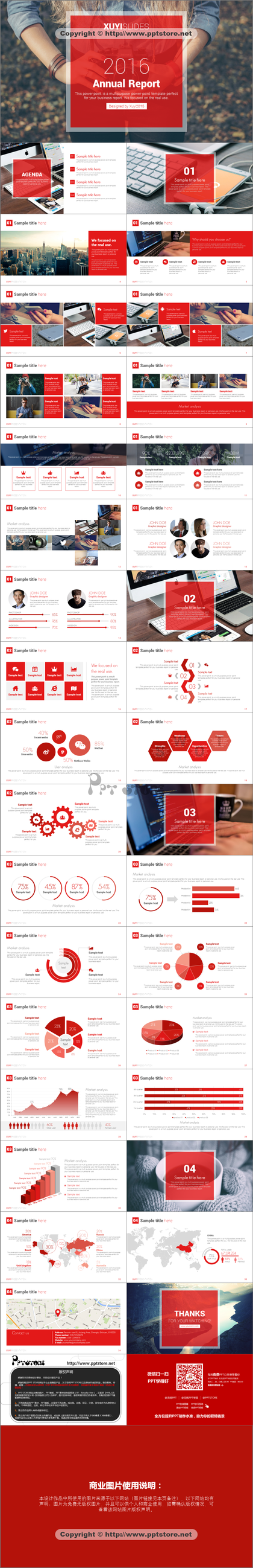 【全中文】2016简约大气商务PPT模板(红+蓝)