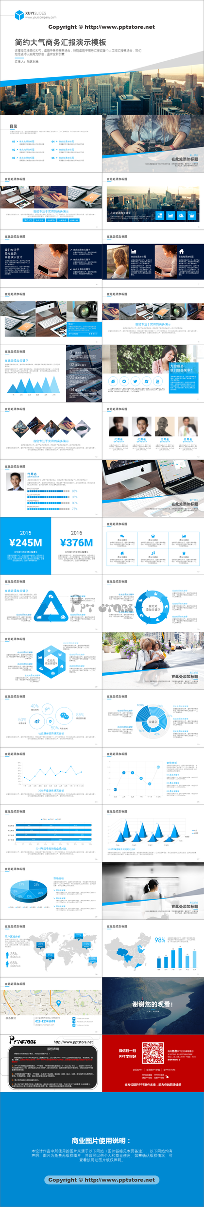 2016简约大气总结汇报模板(蓝+橙+占位符)