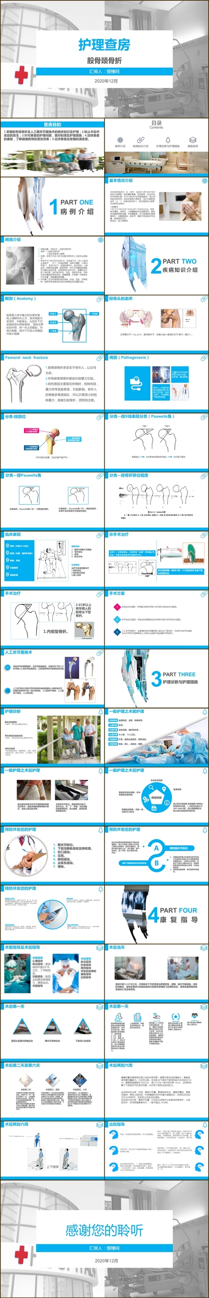 医院卫生部门股骨颈骨折病人护理健康查房工作PPT模板