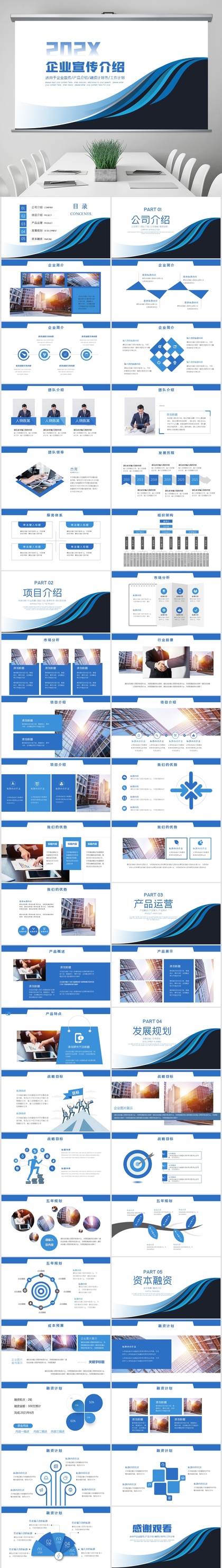 【中文】清新商业计划书模板(红+蓝+占位符)