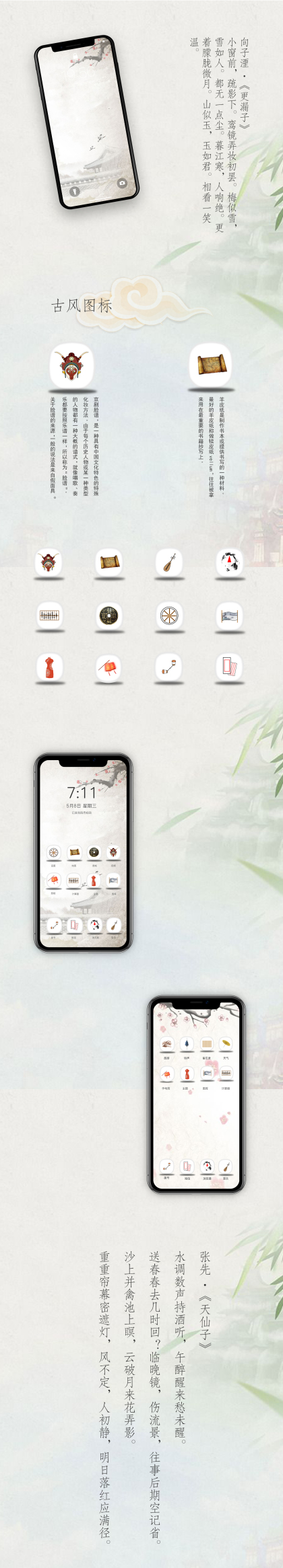 APP界面设计精致图标时尚简约偏平设计图标中国风元素
