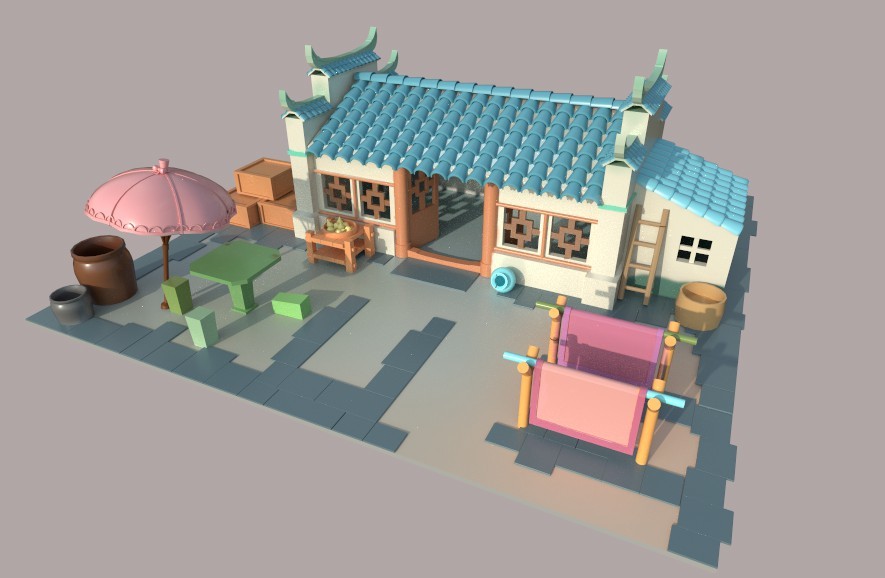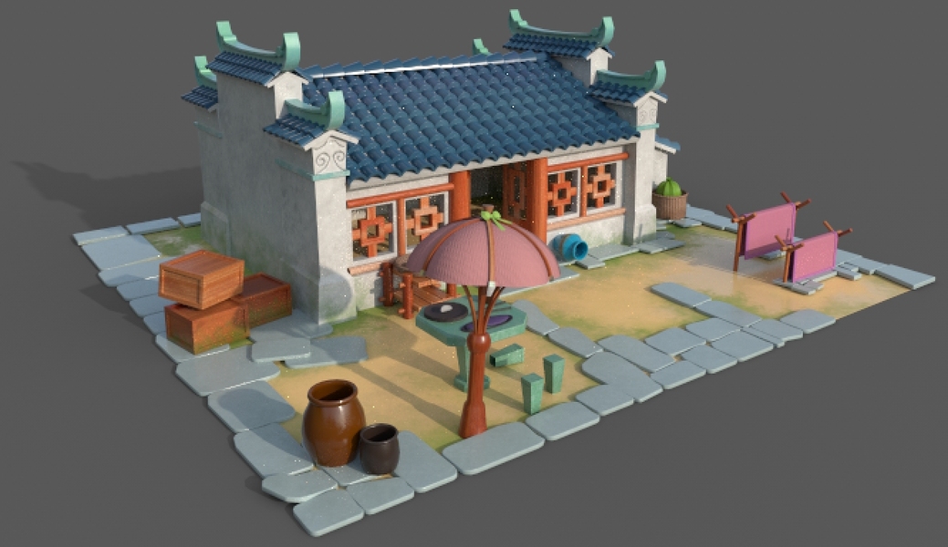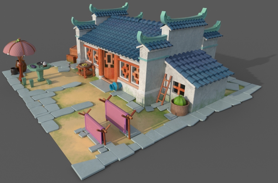 中式场景模型制作
