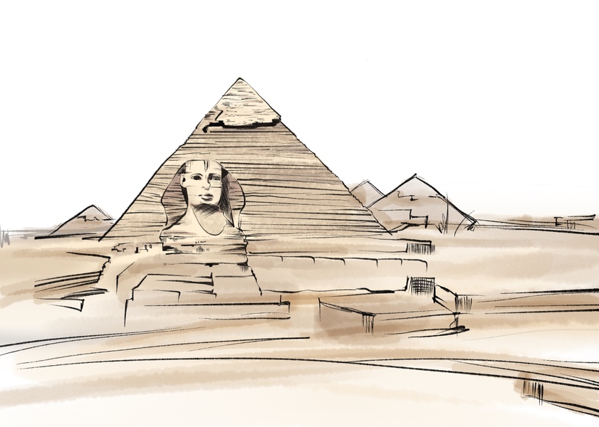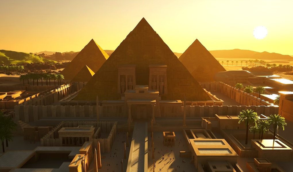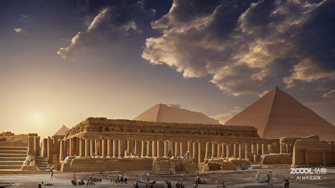 #AI创作实验室#背景是庞大的埃及神殿,远处有金字塔,