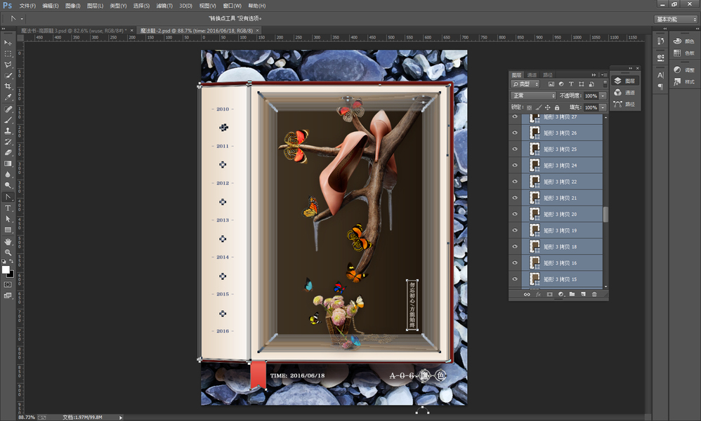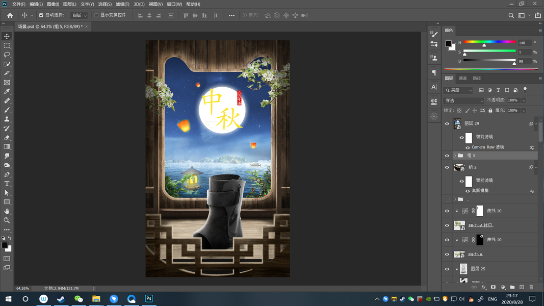 产品场景合成-材质贴图-中秋海报-冷暖色系