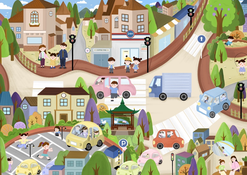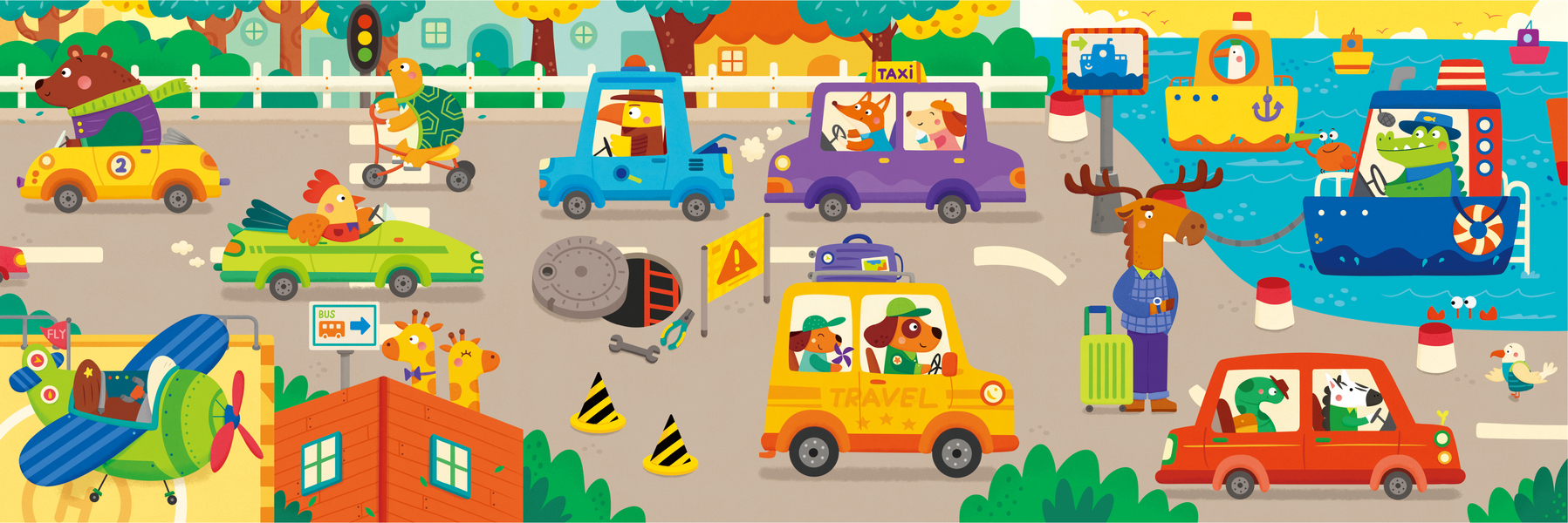 原创儿童插画乱炖-飞机轮船热带沙漠昆虫