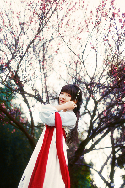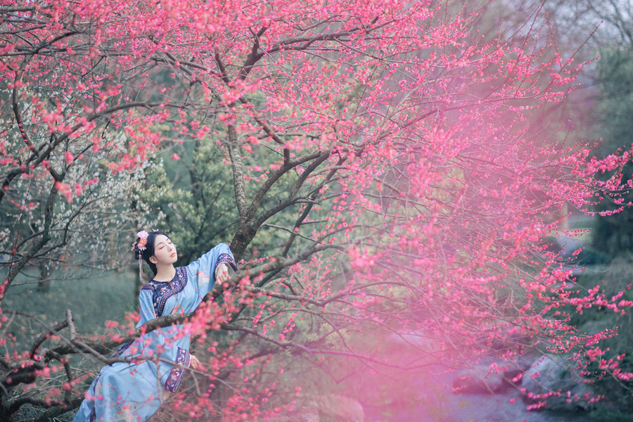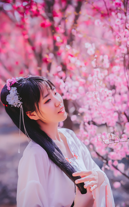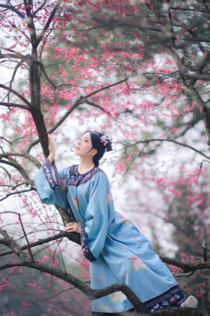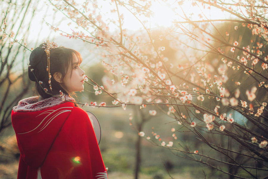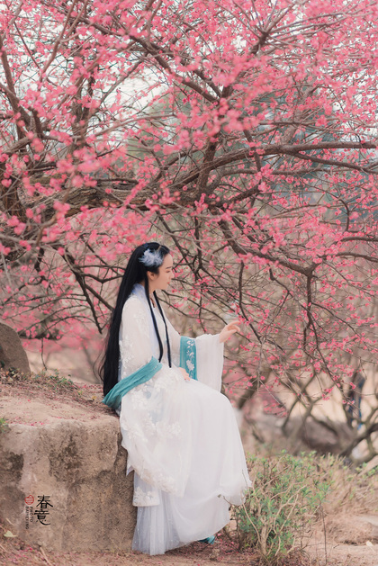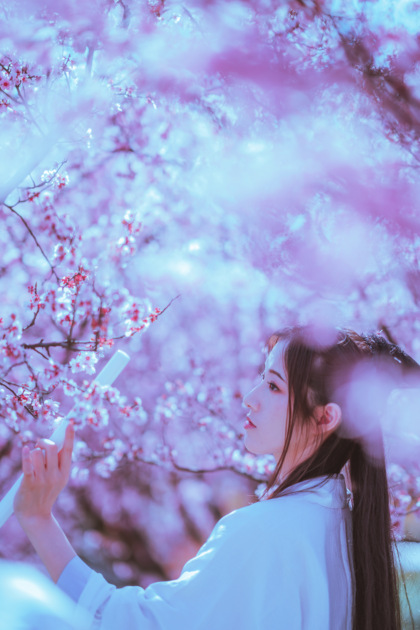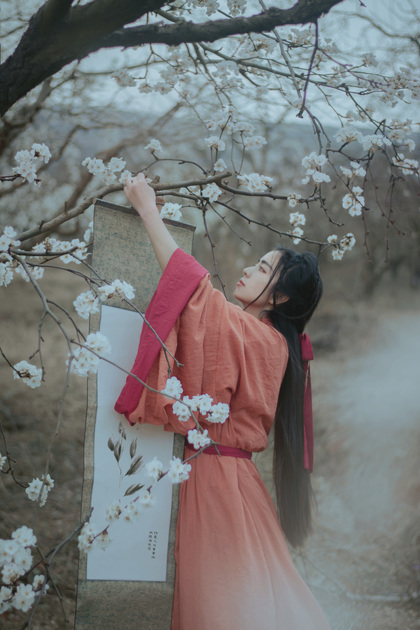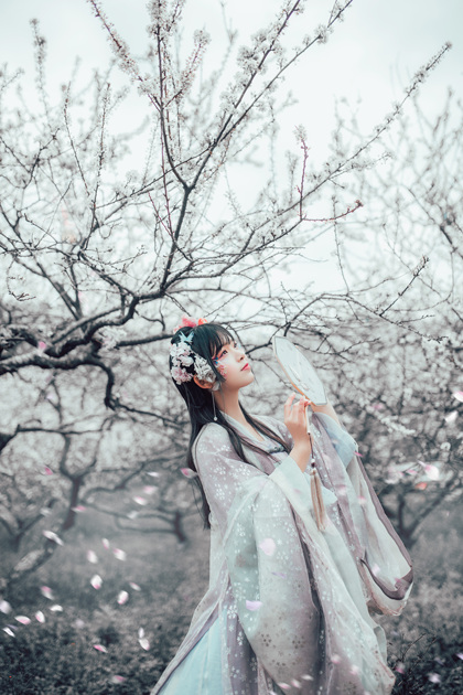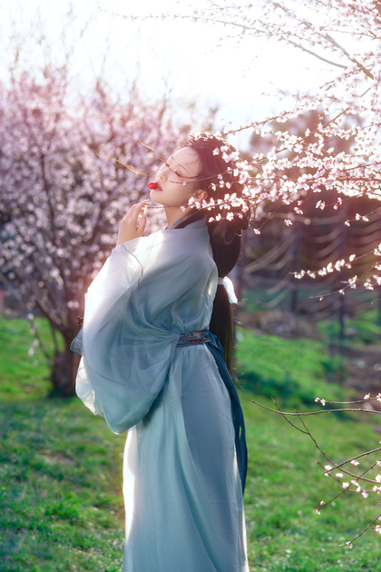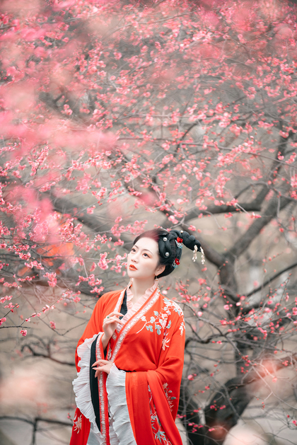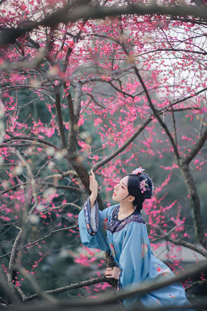 樱花汉服(站着樱花旁的汉服少女)