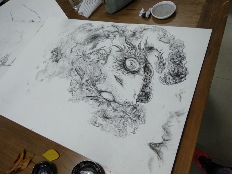 古老传说—风生兽 2015.5.10(黑白画意临摹)