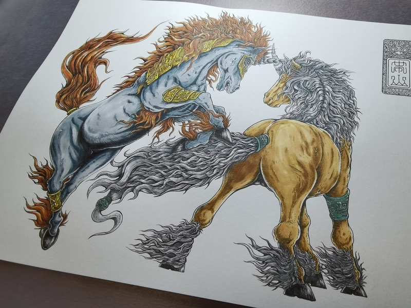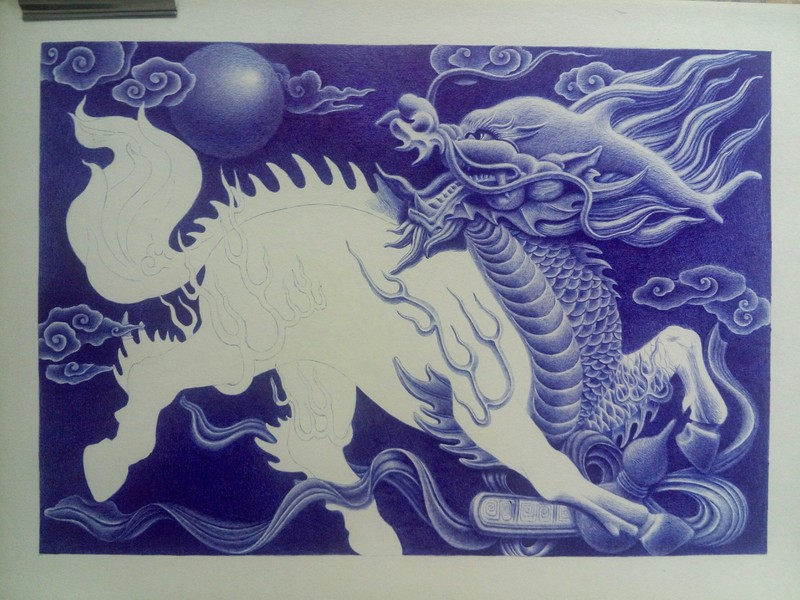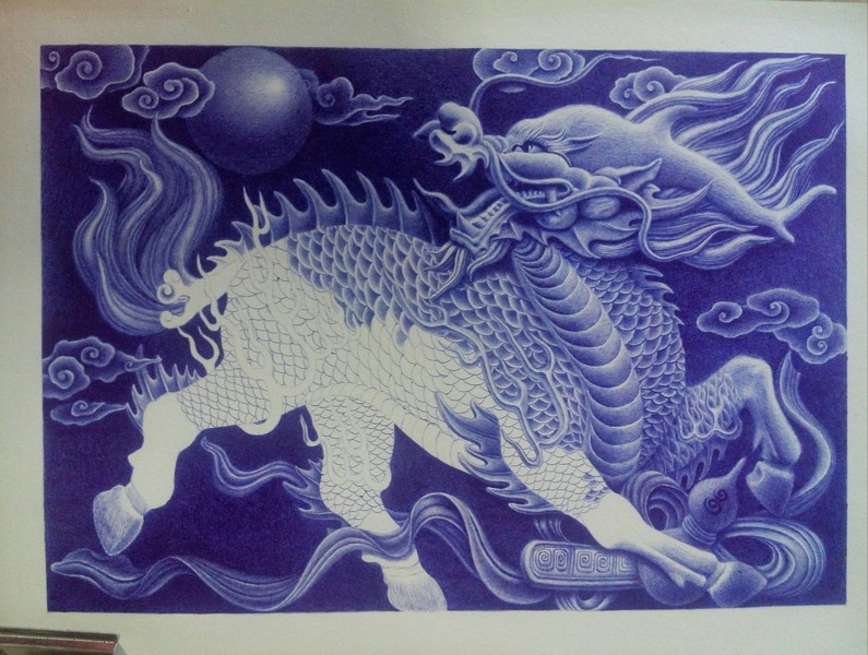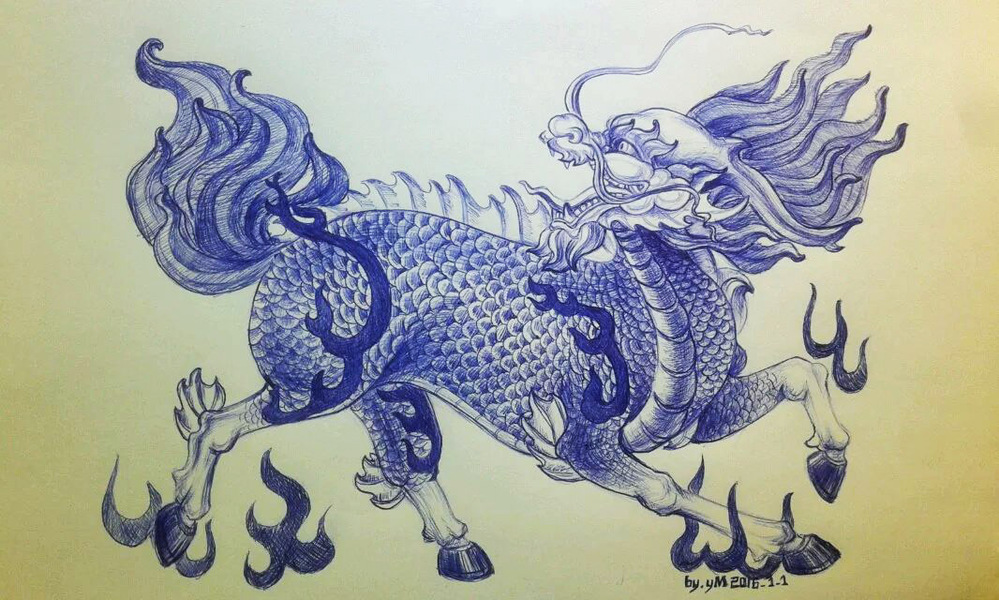 圆珠笔画--麒麟