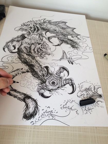奇虎双兽图(内含步骤图)