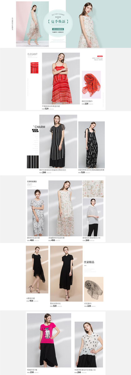 淘宝天猫首页海报 春季欧美首页女装 连衣裙 欧美 时尚 大气 清新 钻展 直通车banner电商海报