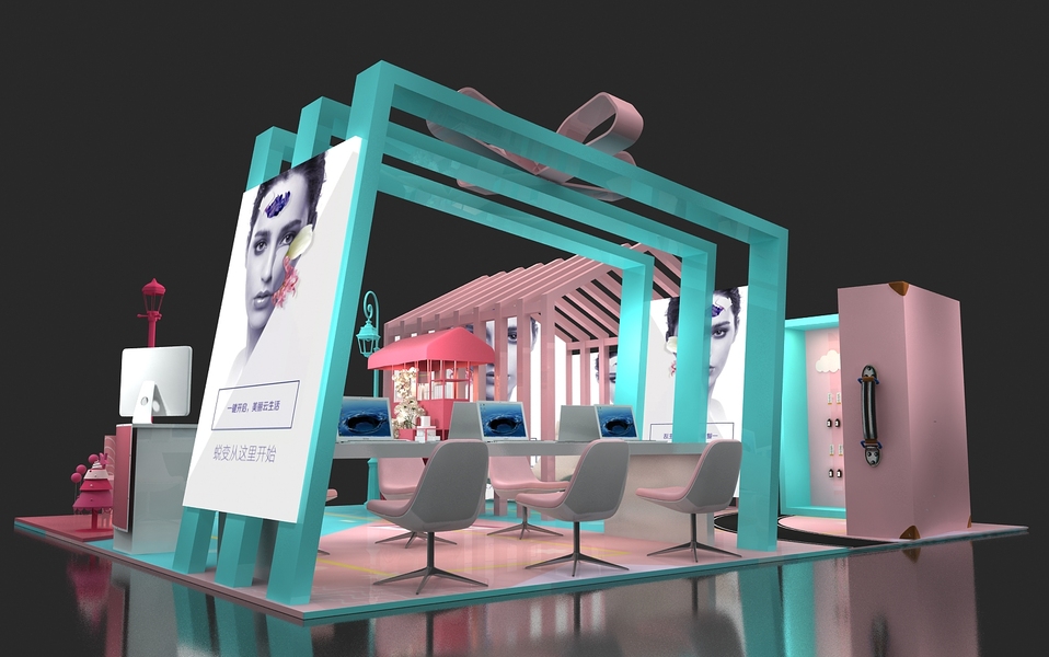 化妆品展台设计 品牌方天率丹(WHOO)展台三维设计