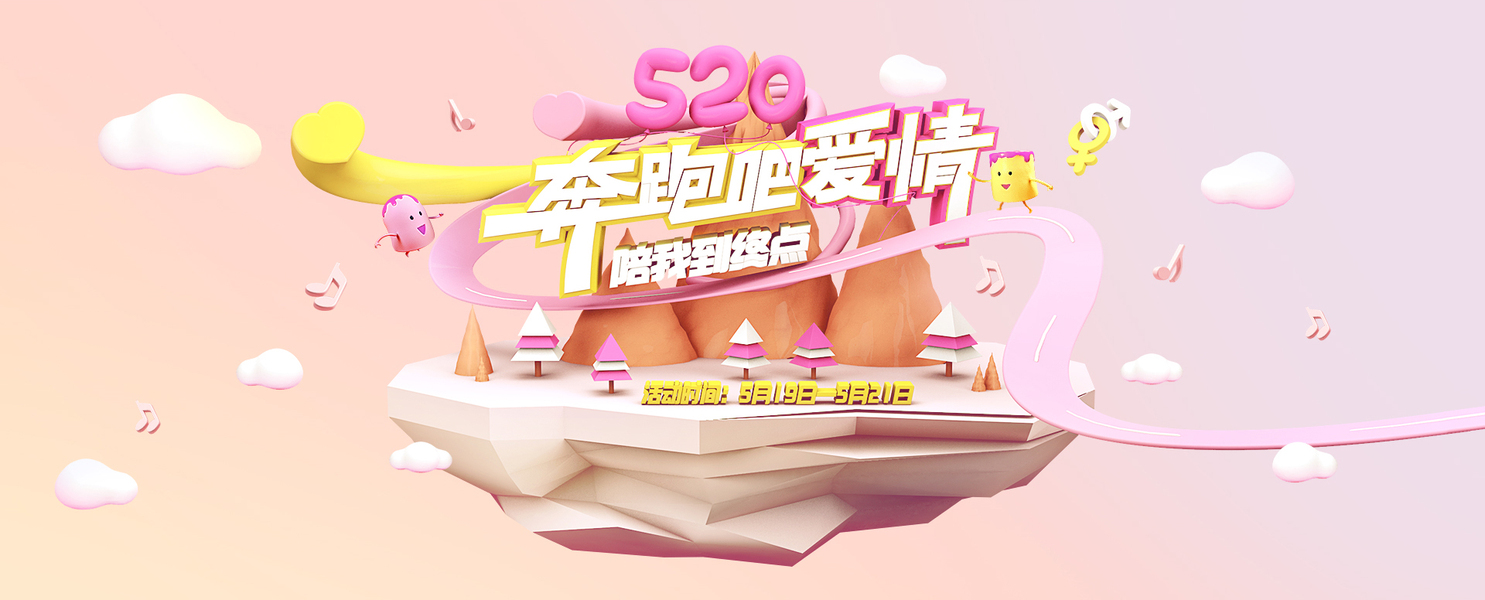 【520活动】“奔跑吧爱情”C4D专题页落地页活动页设计