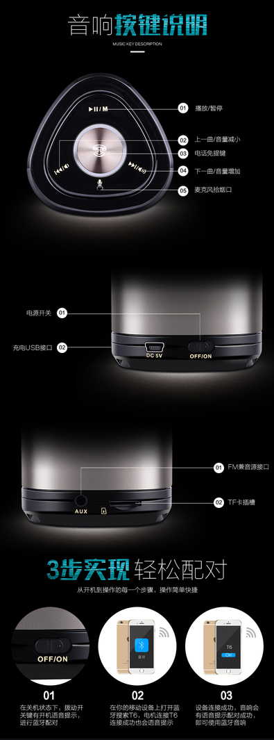 胜已【鑫睿声-蓝牙音箱详情页设计-360°立体环听盛宴】