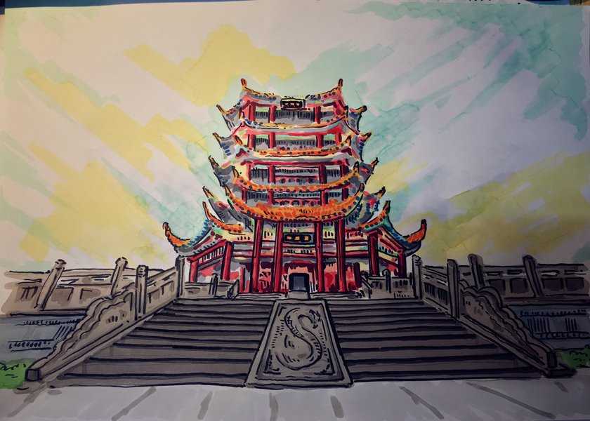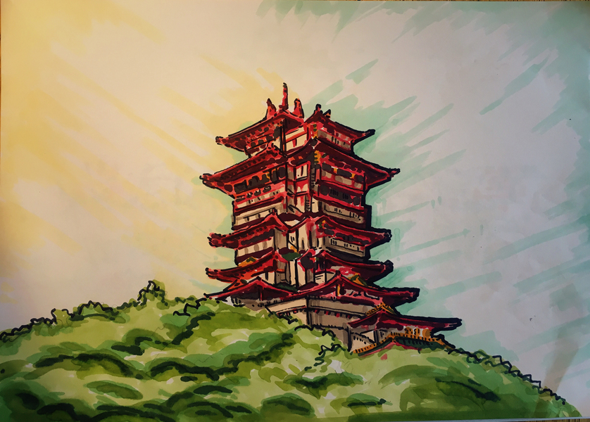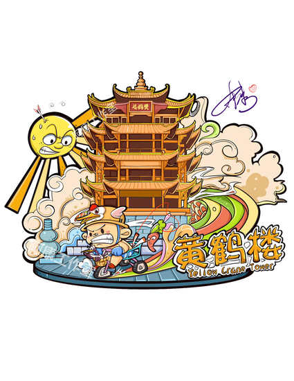 商业插画-宣传插画-手绘地标-餐饮-热干面