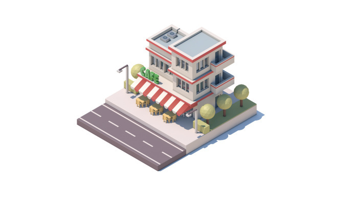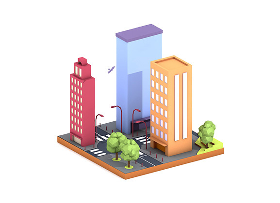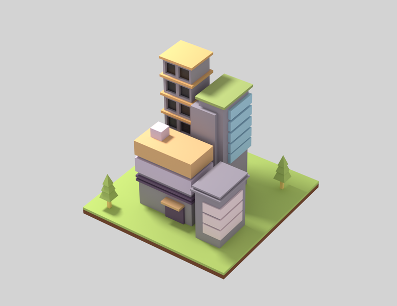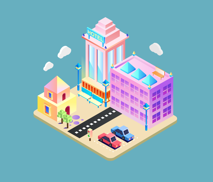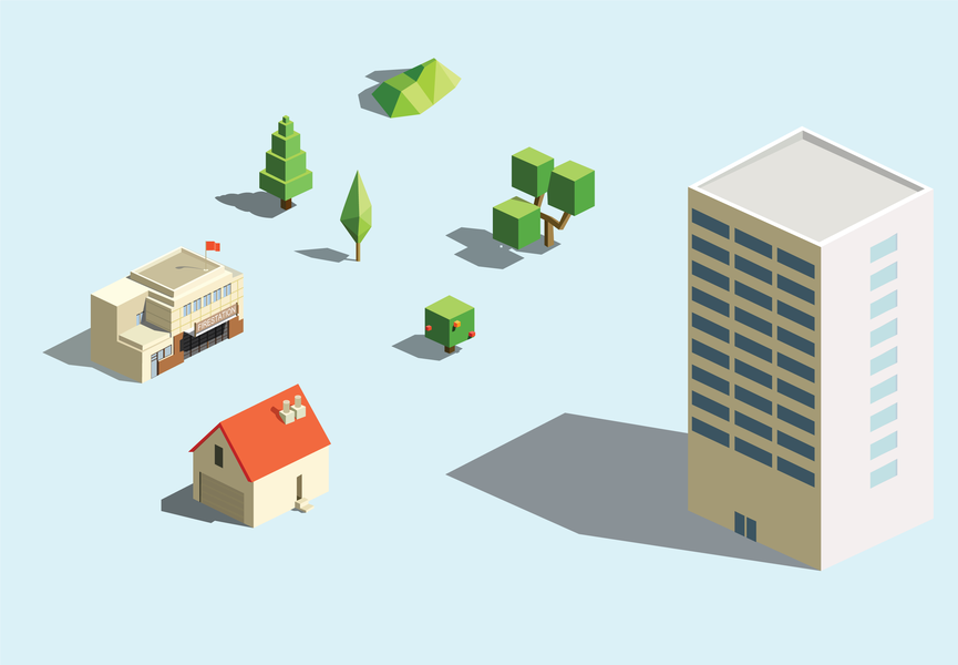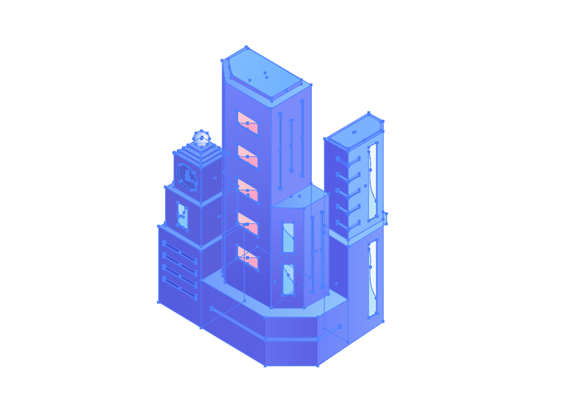 2.5D轴测图临摹-建筑街道