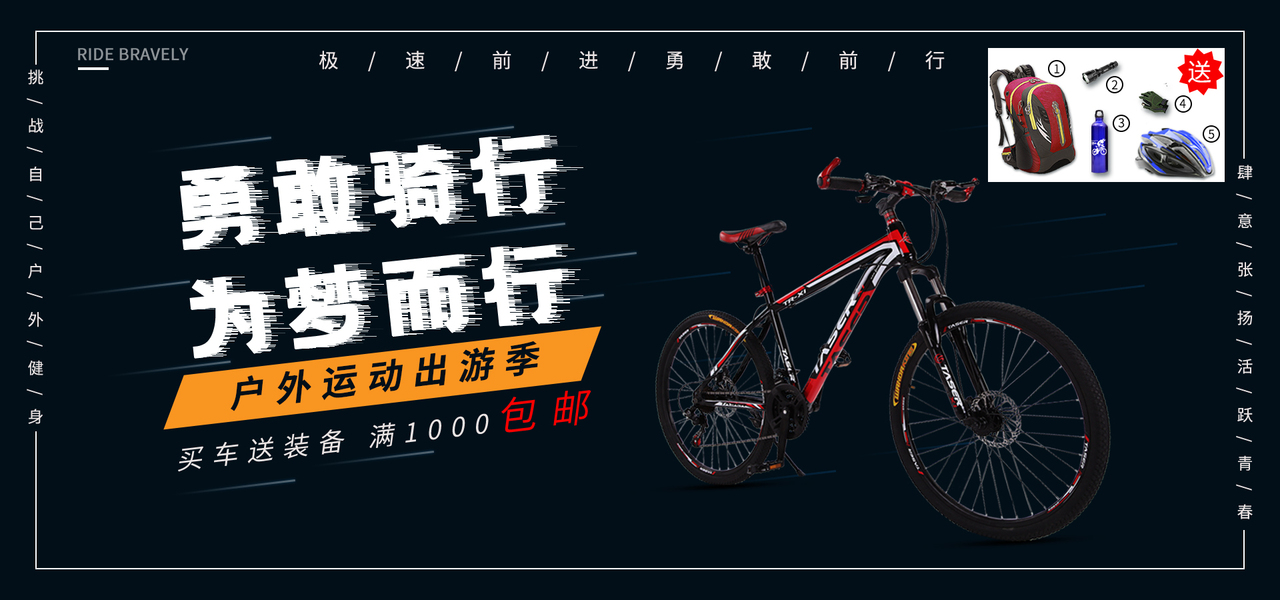 自行车海报 banner 自行车首页 春季踏青季 天猫首页 淘宝首页 活动页面 专题页 自行车 图解