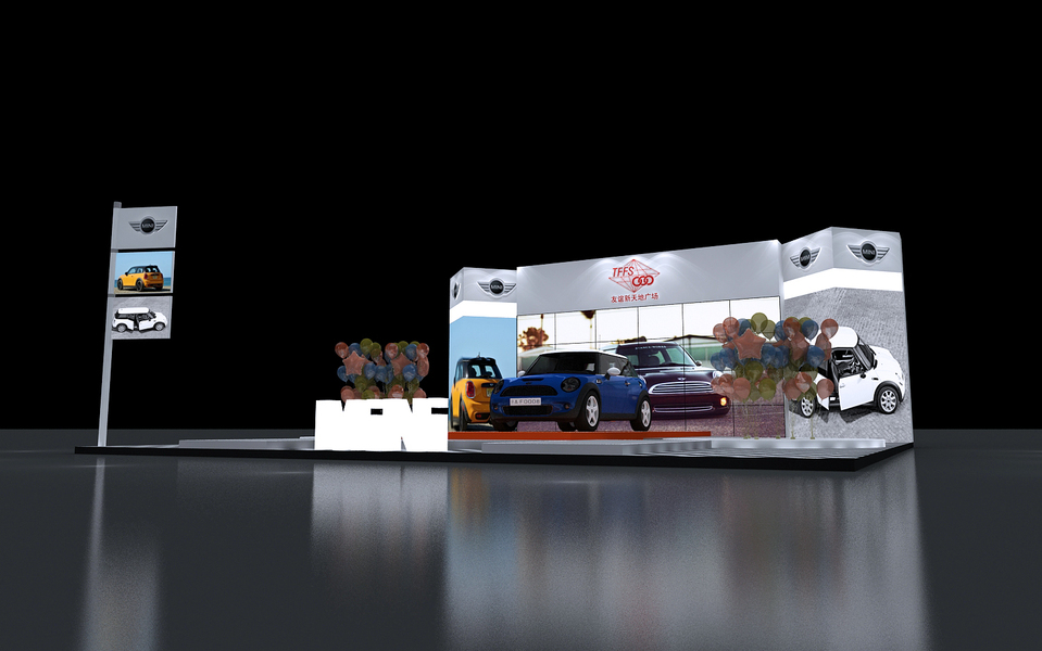 MINI车展展位3D效果图。展会展厅各种3D设计效果图