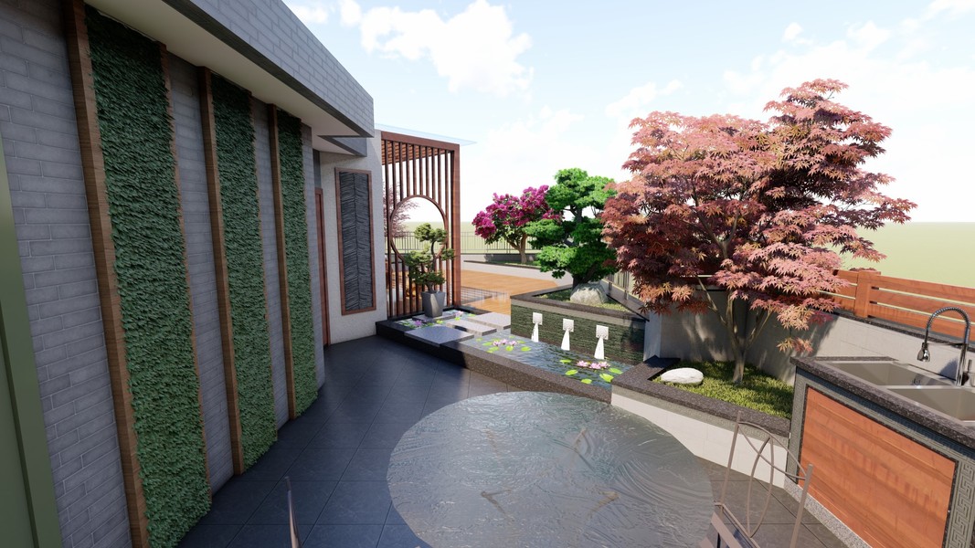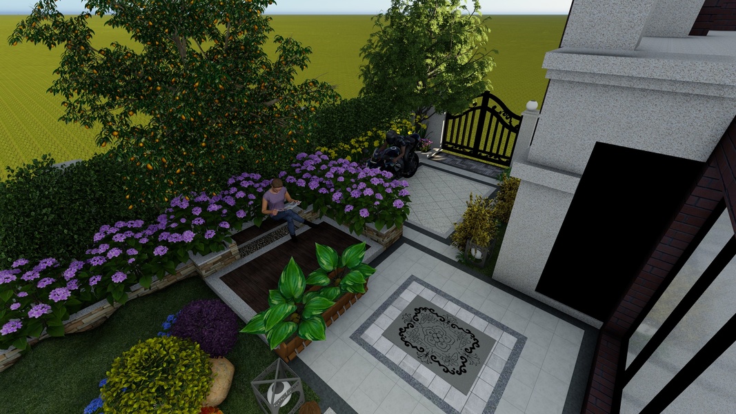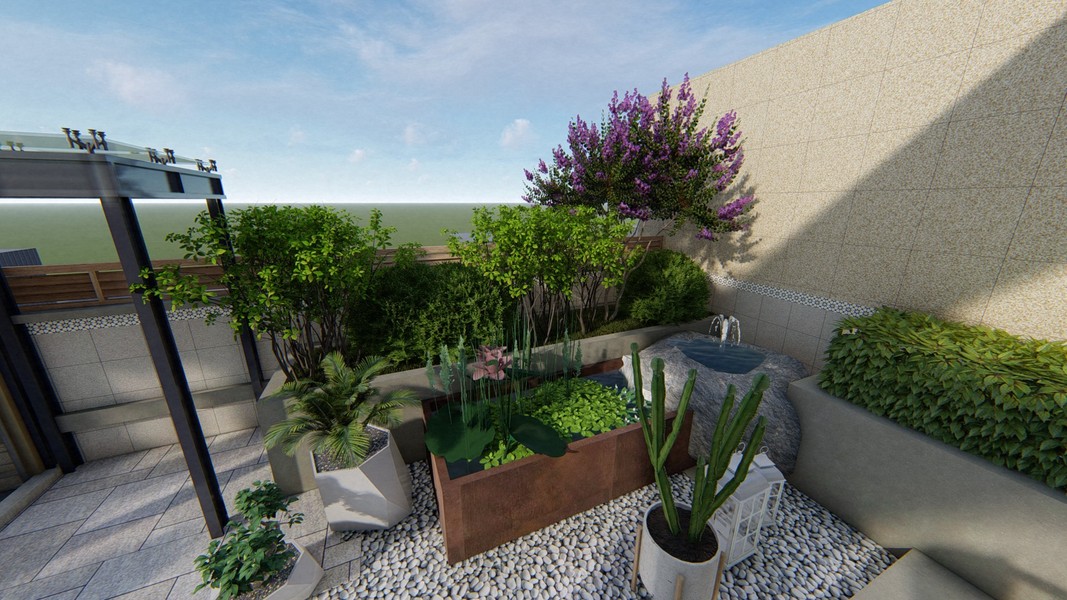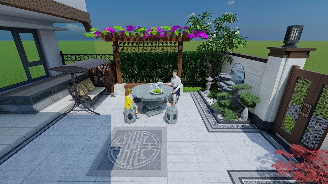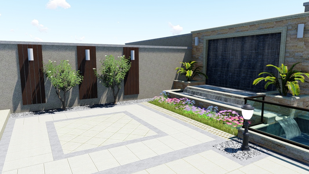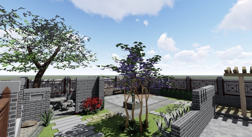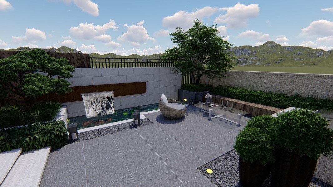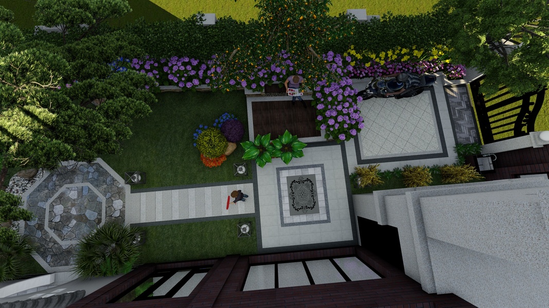现代田园式下沉式南京丽景花园庭院项目设计案例原创